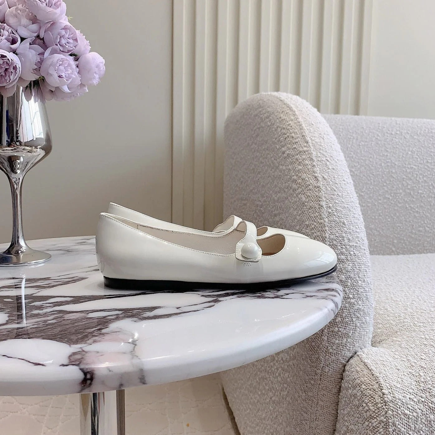 Floral White Ballet Shoes Sheepskin
