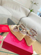 GARAVANI ROCKSTUD WEDGE SANDALS IN ROSY BROWN CALFSKIN AND BEIGE RAFFIA