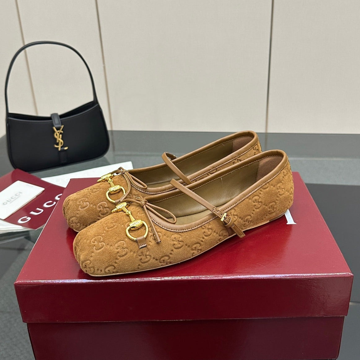 GC 25 Horsebit Ballet Flat Brown Monogram Suede