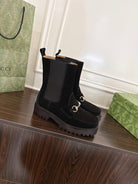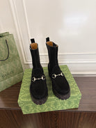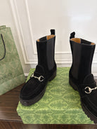 Gucci Horsebit Ankle Boots Black Suede Sheepskin 490528
