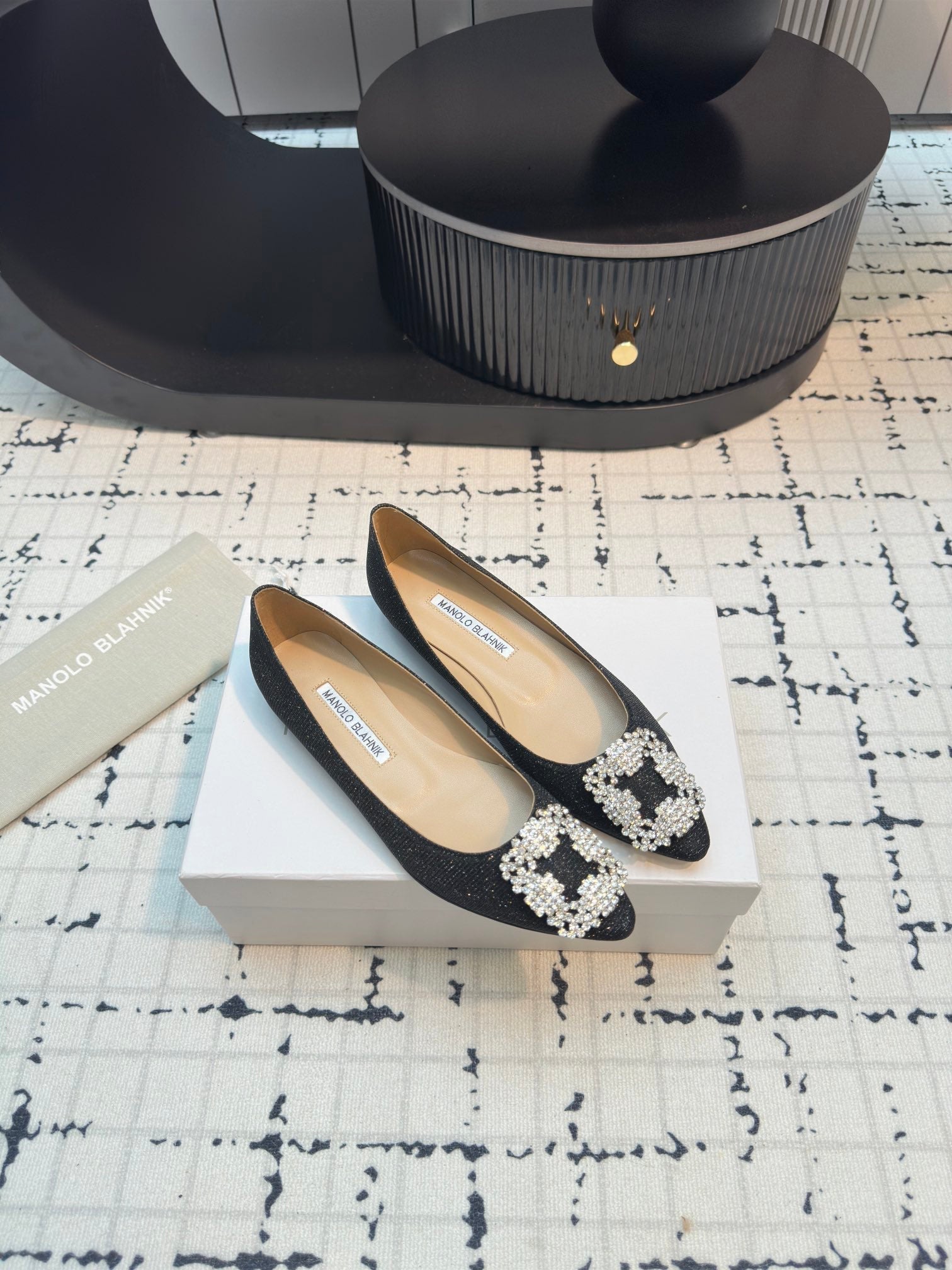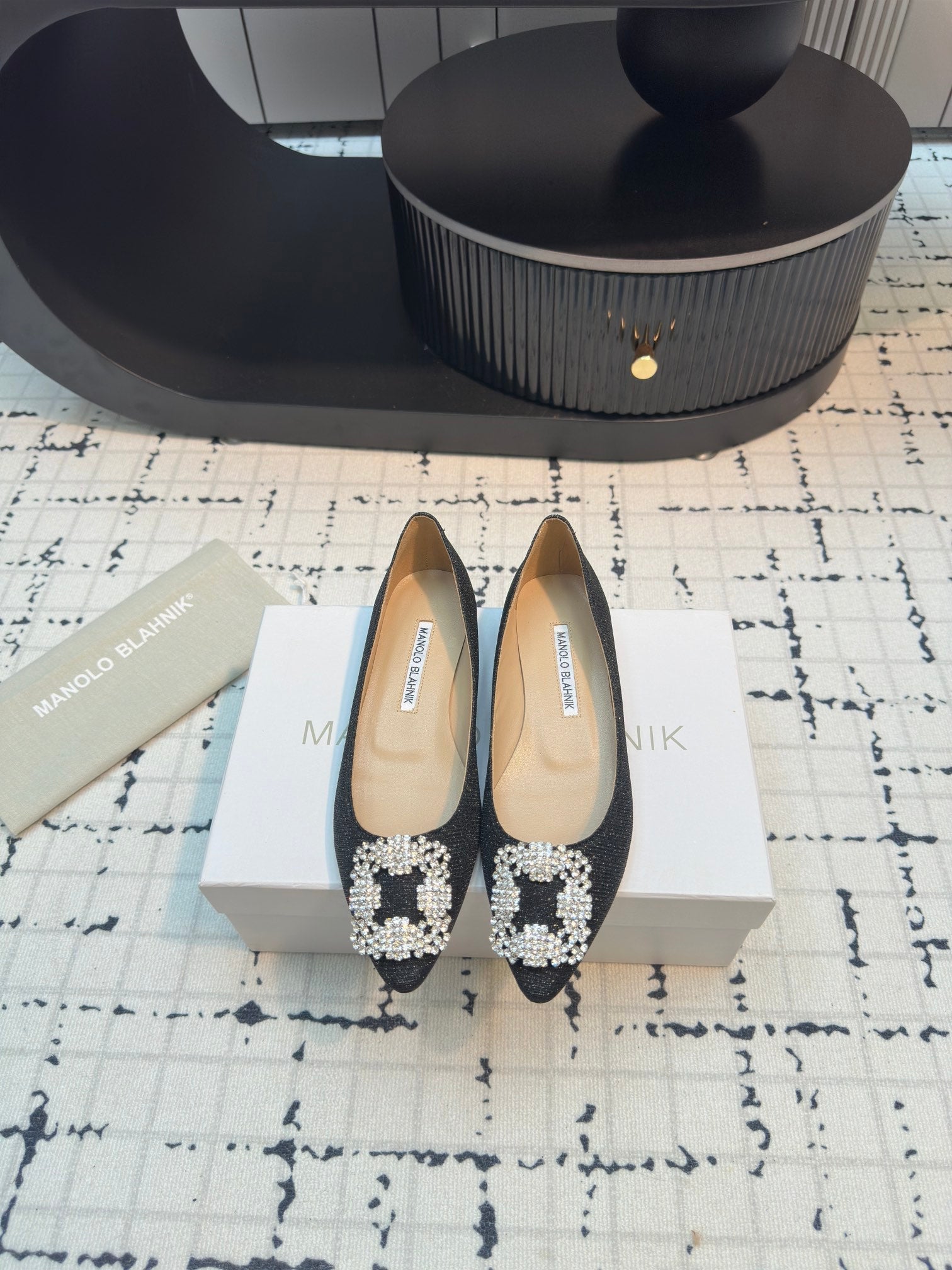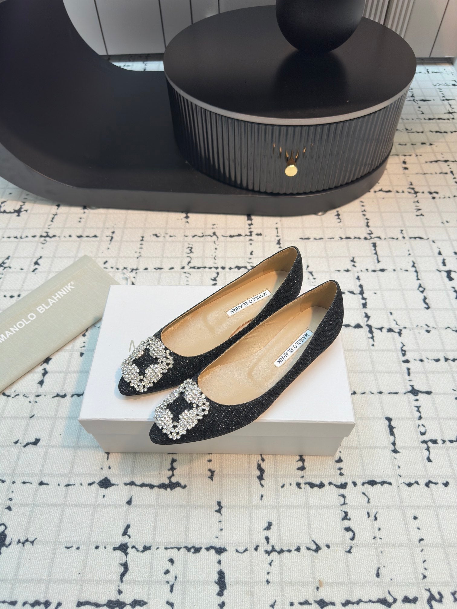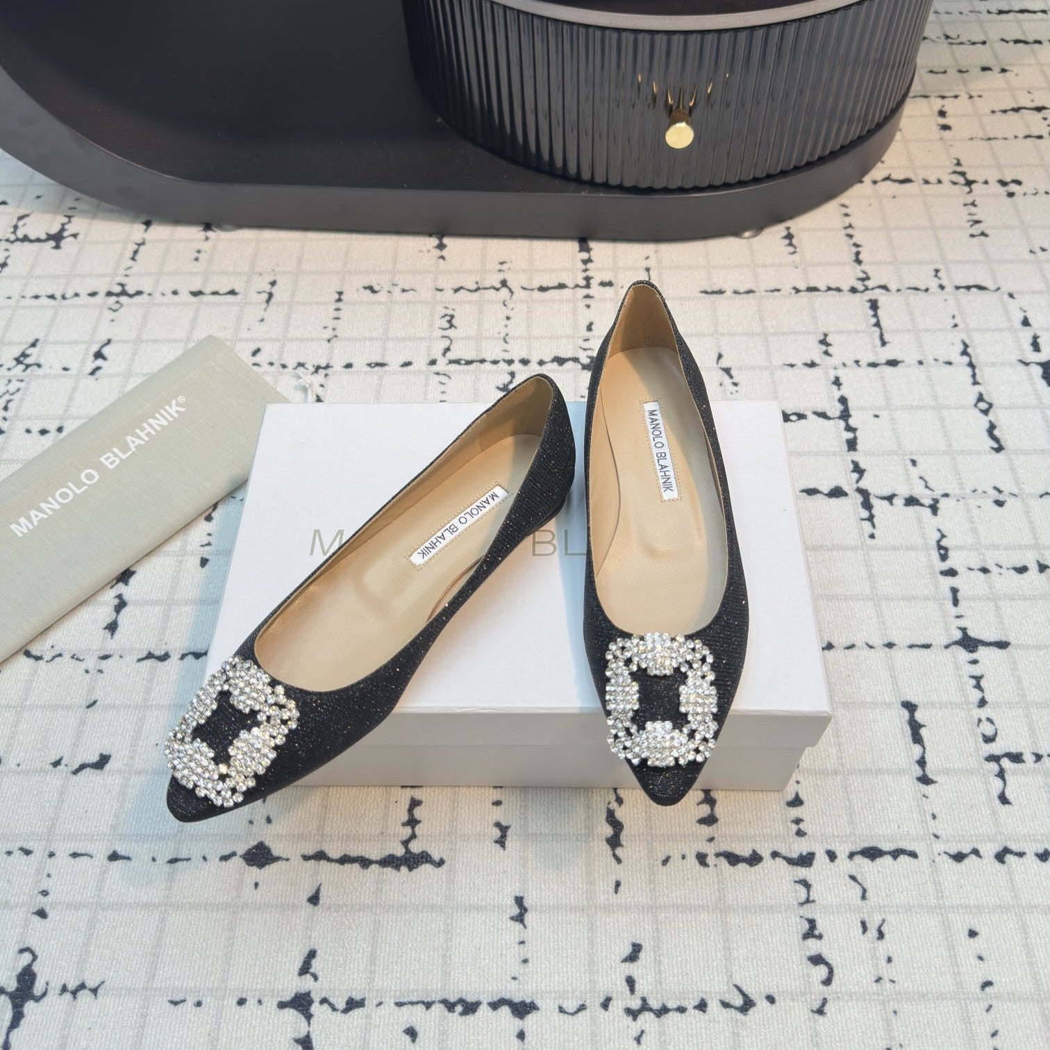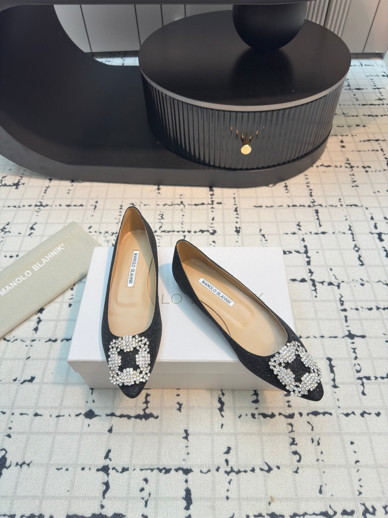 Hangisi 20 Ballet Flat Black Glitter Fabric Leather Jewel Buckle 912608