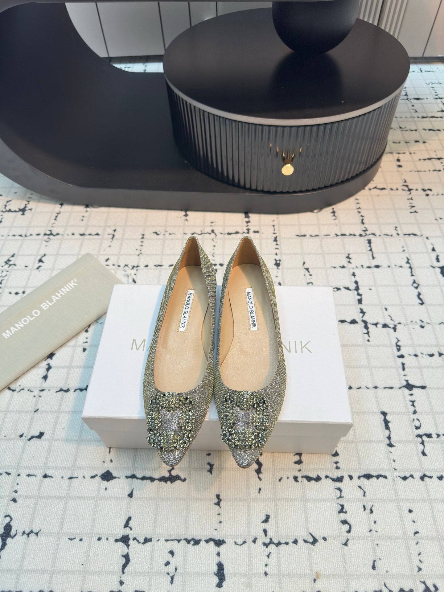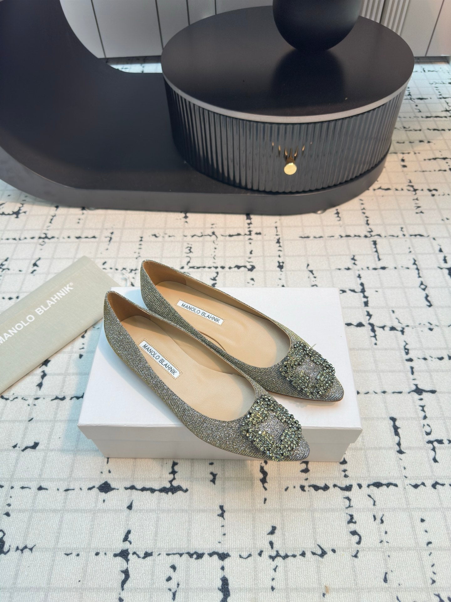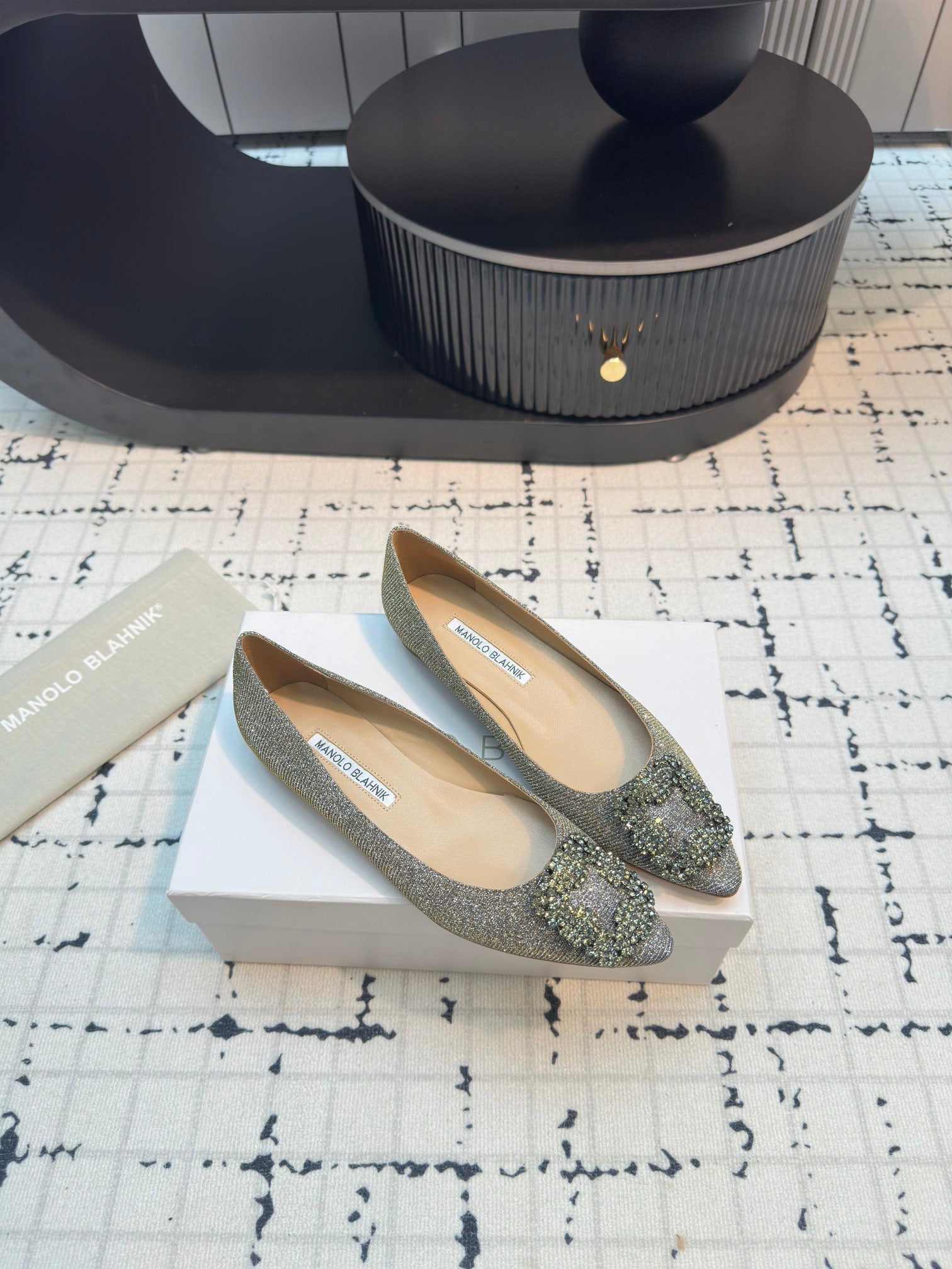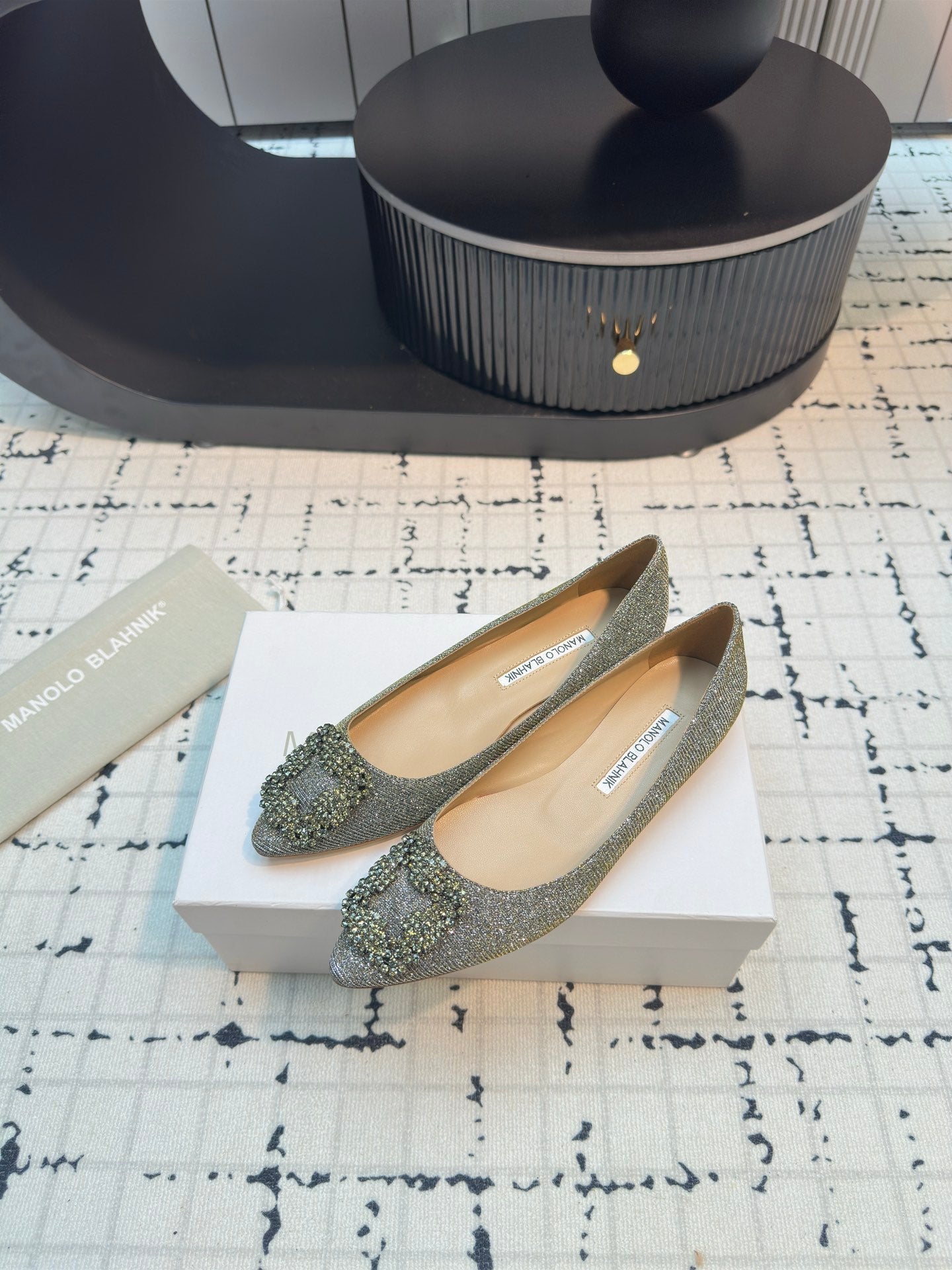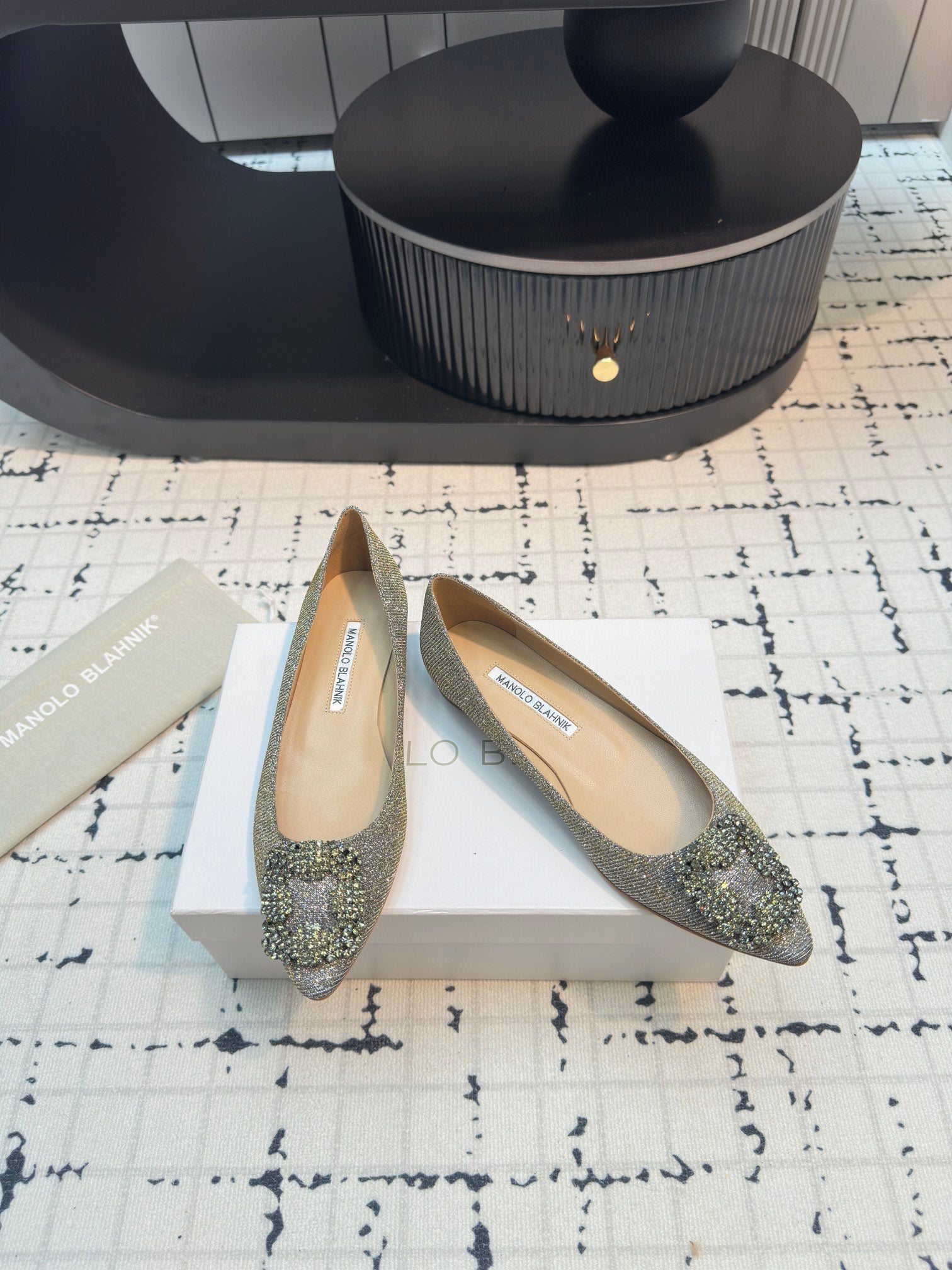 Hangisi 20 Ballet Flat Gold Glitter Fabric Leather Jewel Buckle 912606