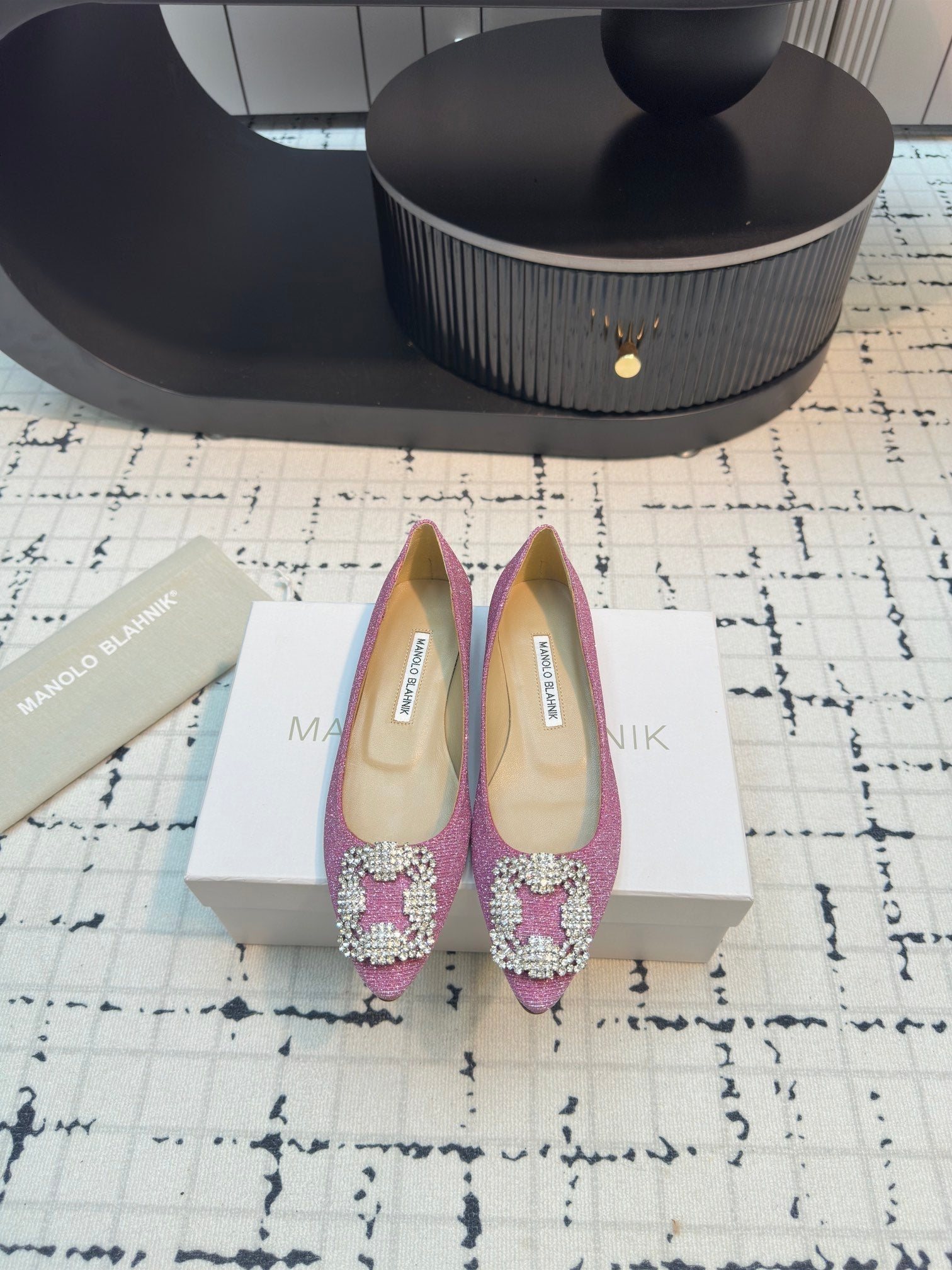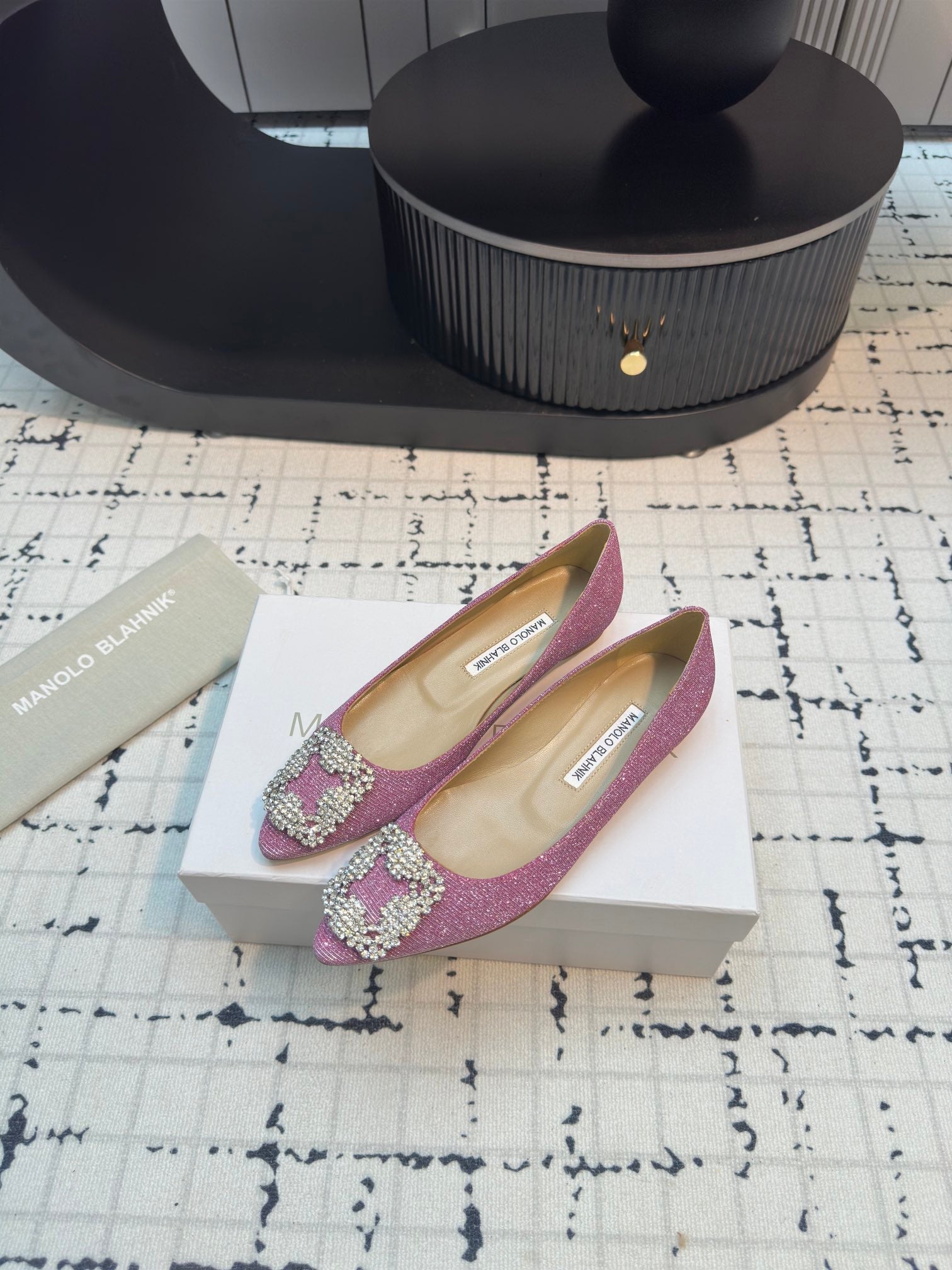 Hangisi 20 Ballet Flat Pink Glitter Fabric Leather Jewel Buckle 912609