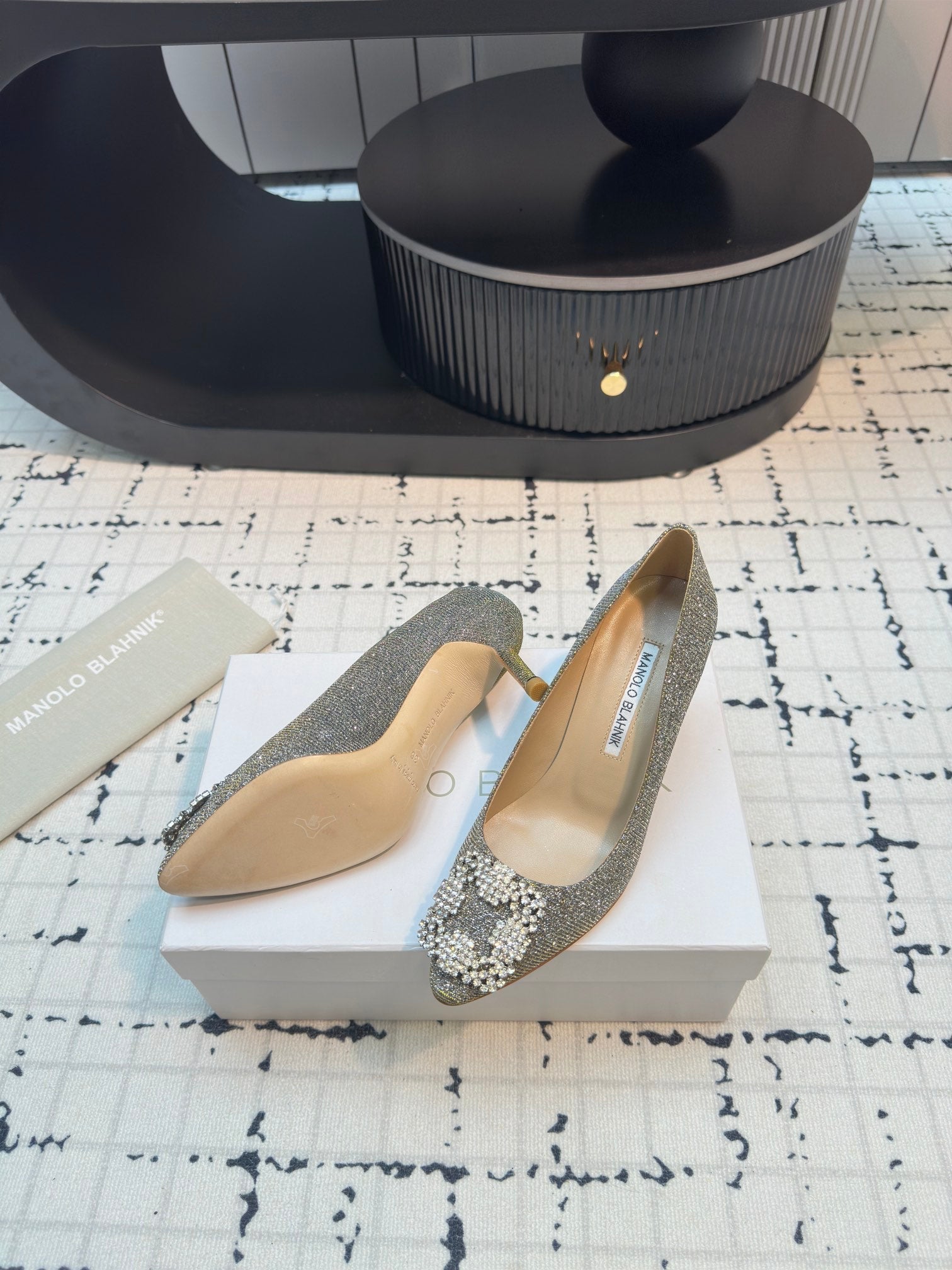 Hangisi 70 Gold Glitter Fabric Leather Jewel Buckle Pumps 912614