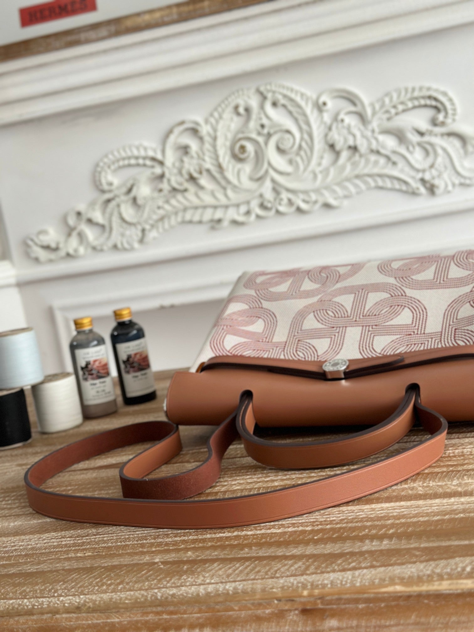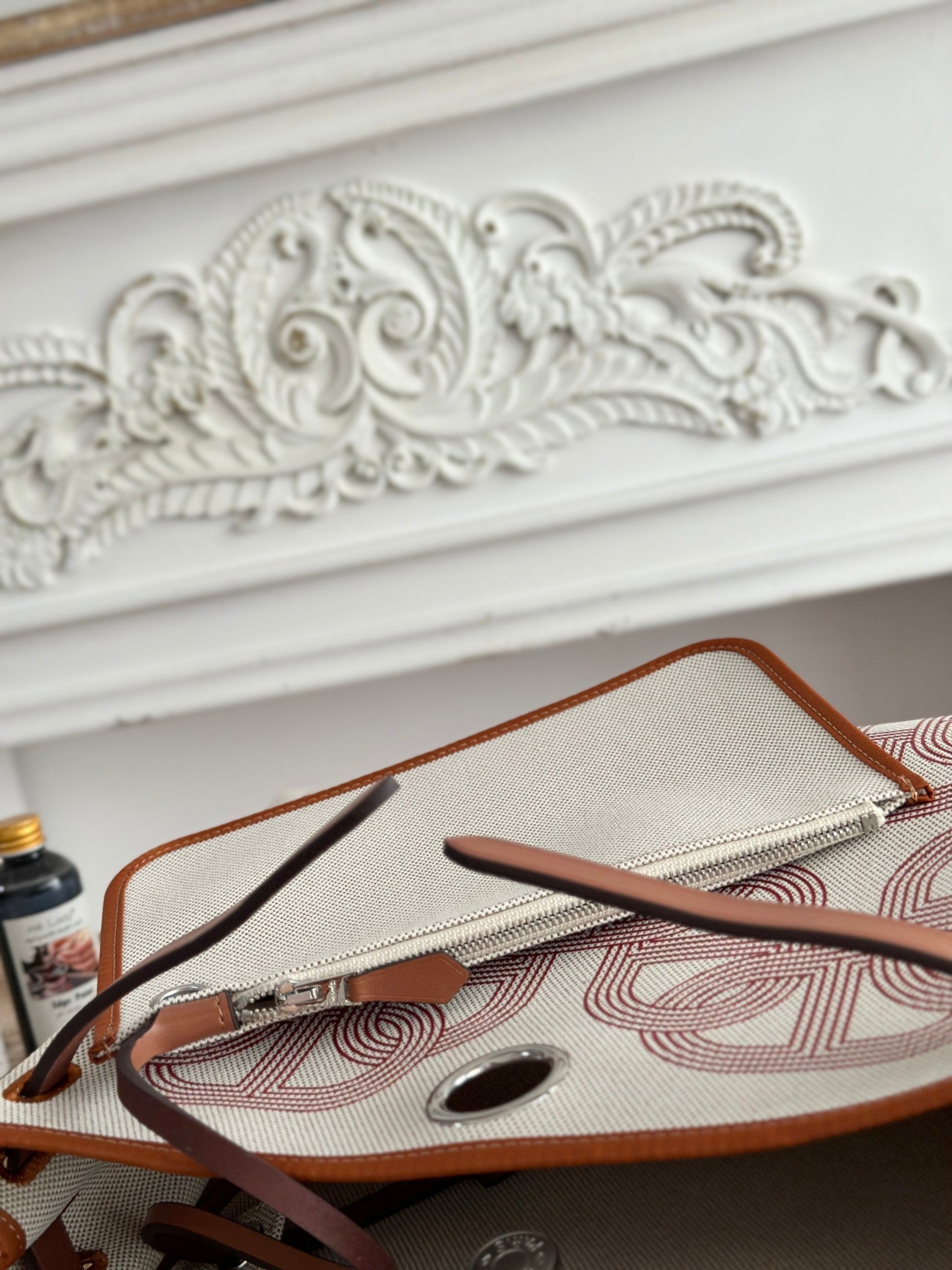 HERBAG ZIP 31 LAQUERED BAG IN OFF-WHITE MIX RED H PLUME CANVAS