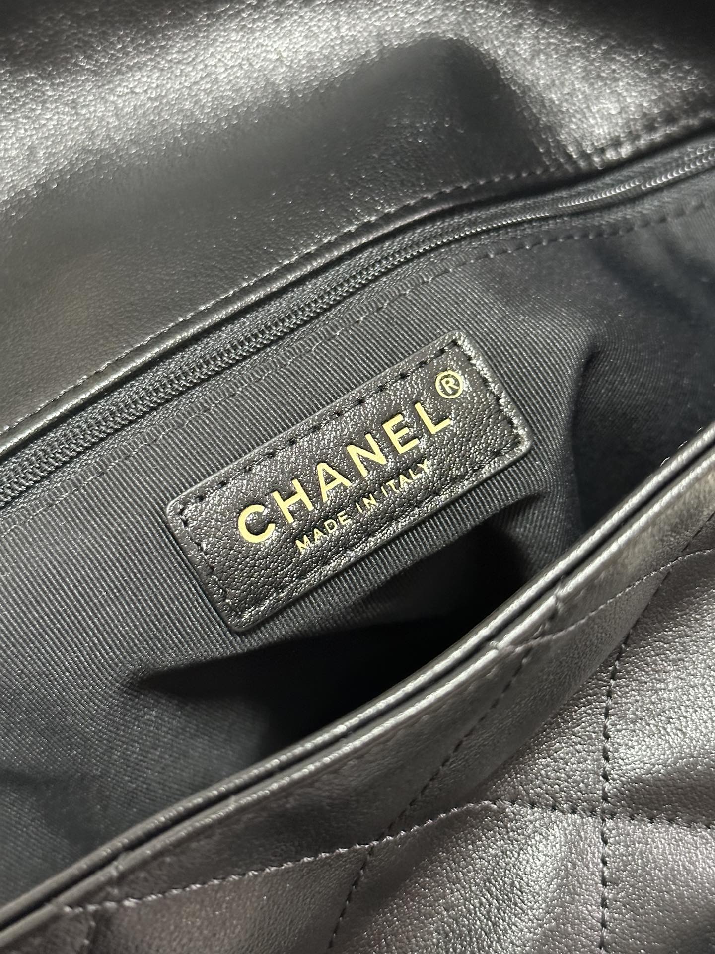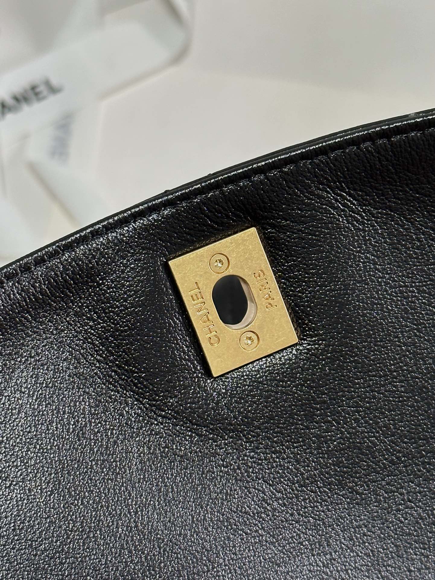HIPPIE HOBO POSTMAN BAG 30 IN BLACK CALFSKIN GOLD HARDWARE