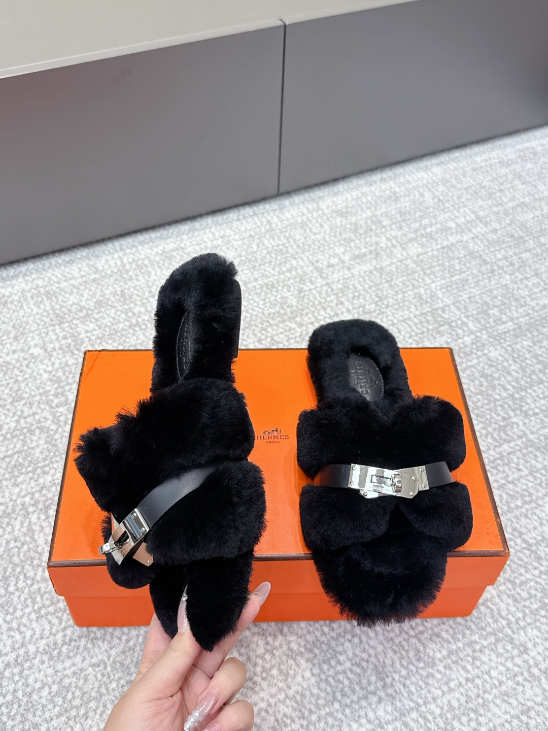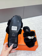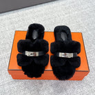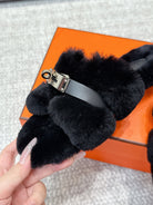HM 25s H Shaped Slipper with Buckle Black Shearling 462196