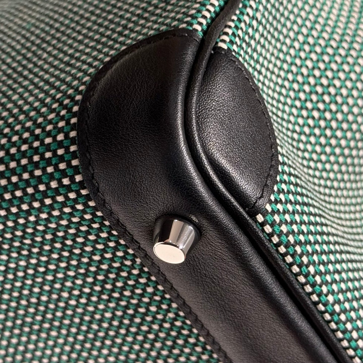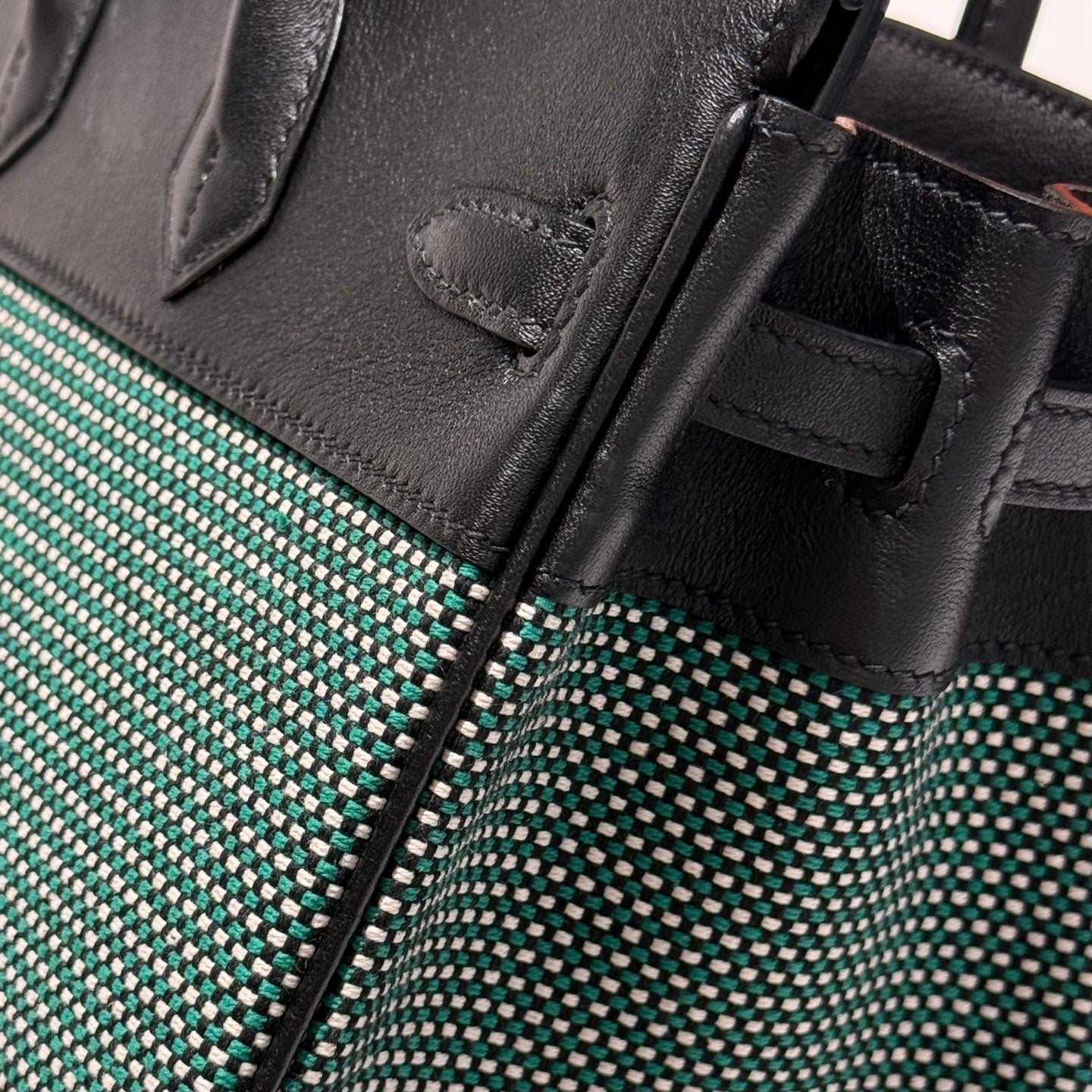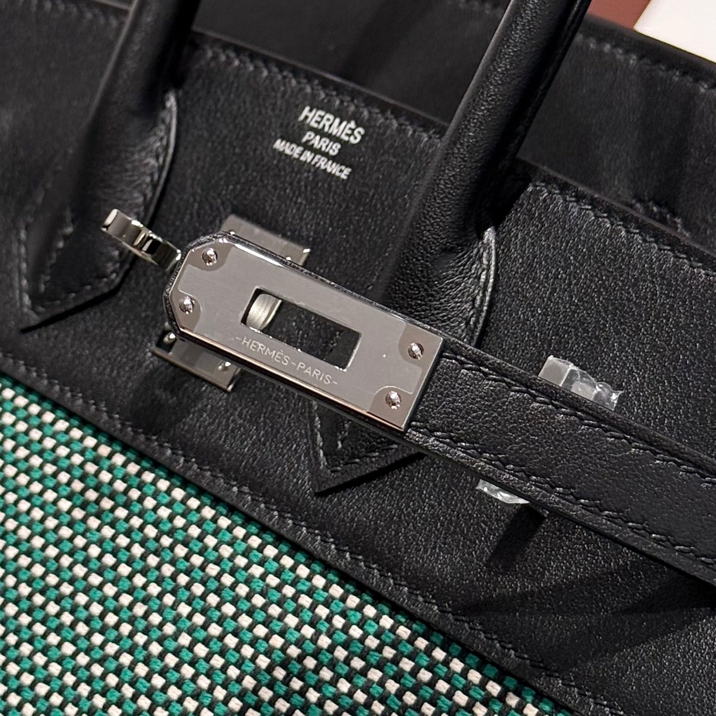 HM Birkin 25cm Black Swift Cowhide With Waffe Forest Green Canvas Fabric Shw 249987