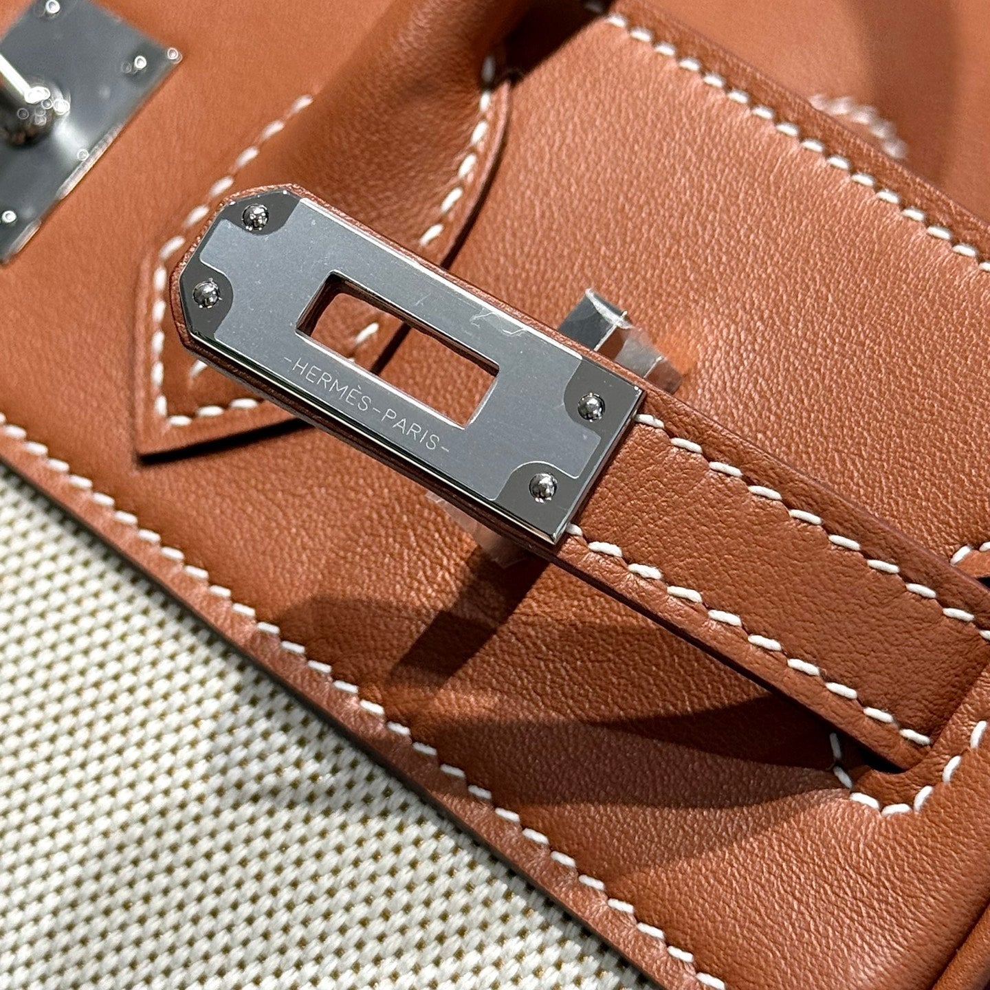 HM Birkin 25cm Golden Brown Swift Cowhide With Beige Canvas Fabric Shw 249989