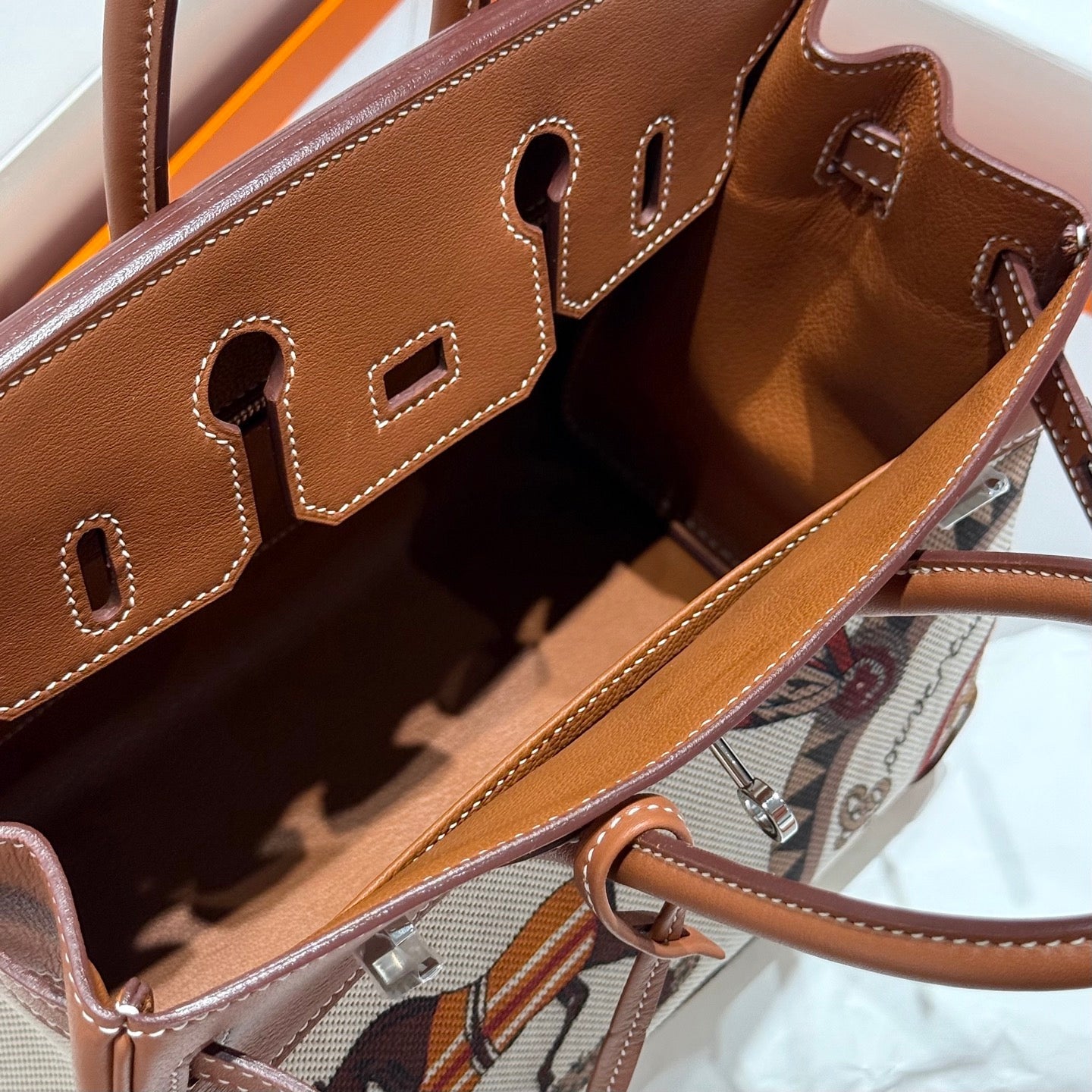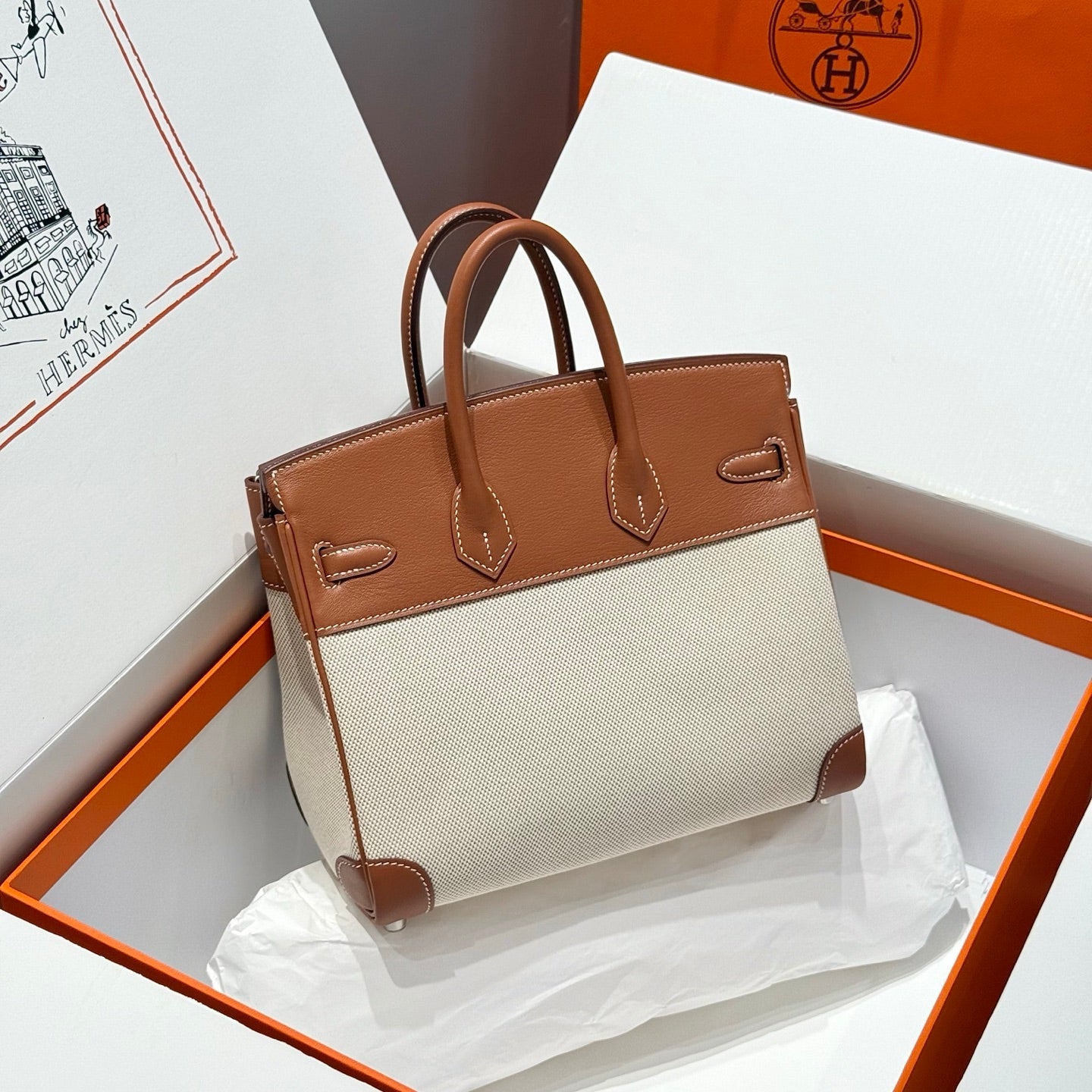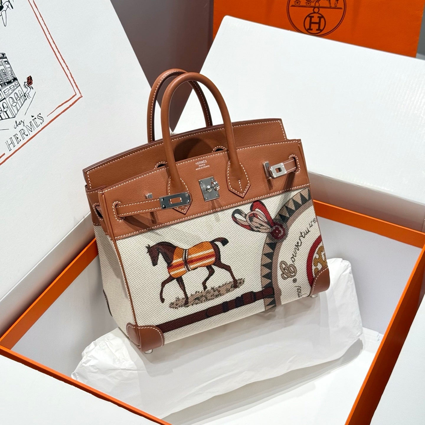 HM Birkin 25cm Golden Brown Swift Cowhide With Horse Totem Beige Canvas Fabric Shw 249990