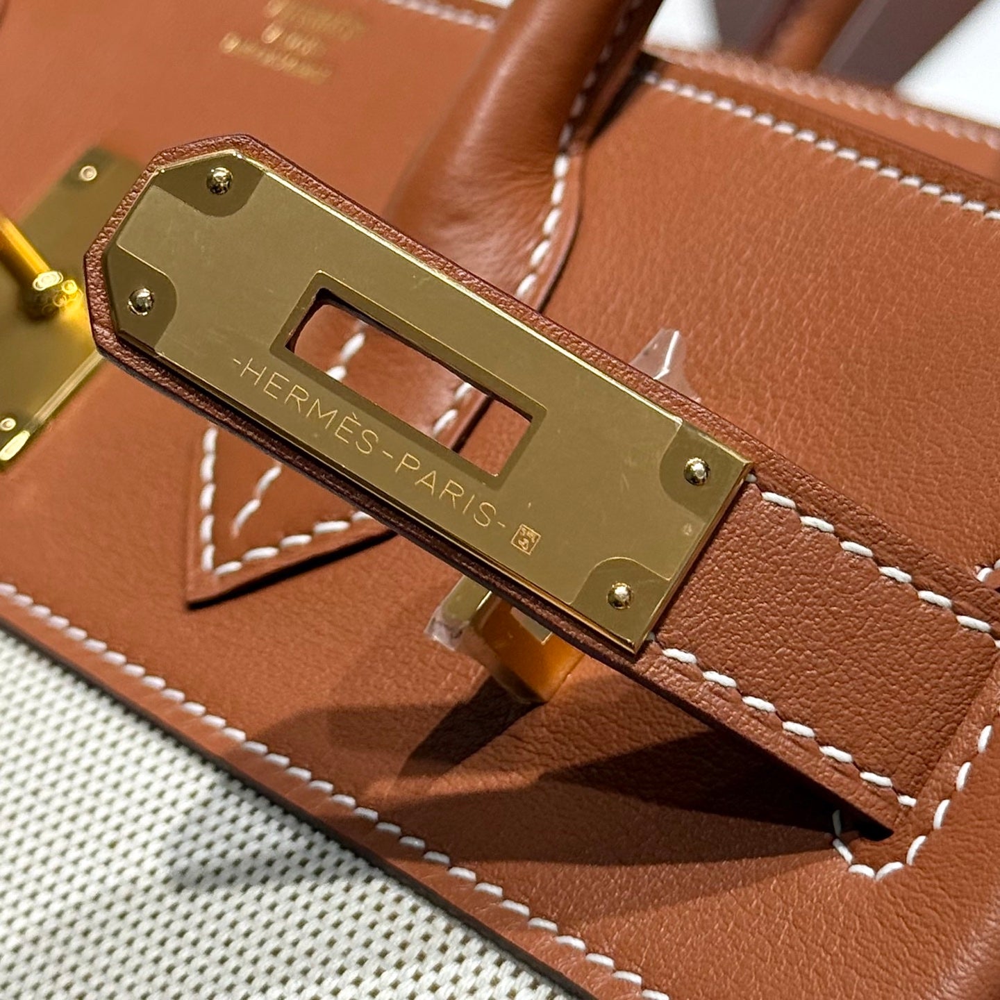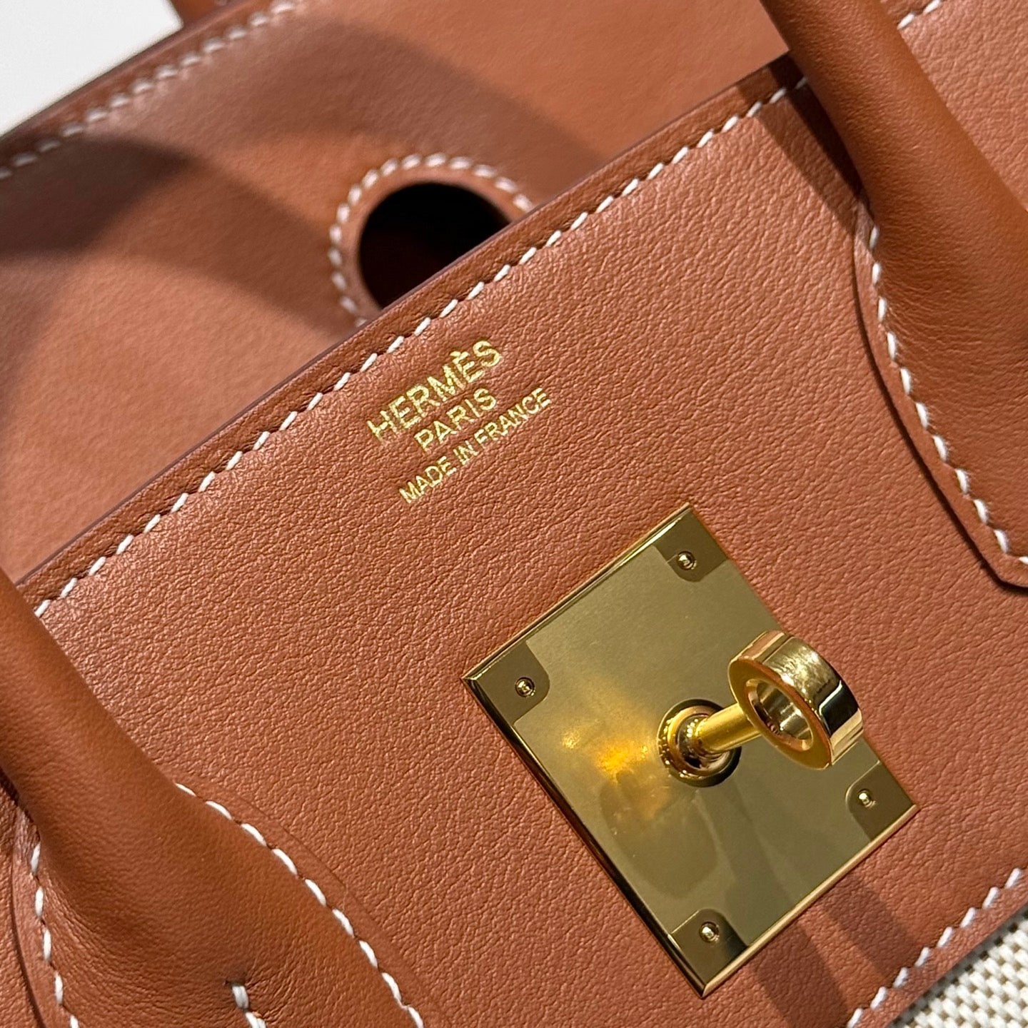 HM Birkin 30cm Golden Brown Swift Cowhide With Beige Canvas Fabric Ghw 249976