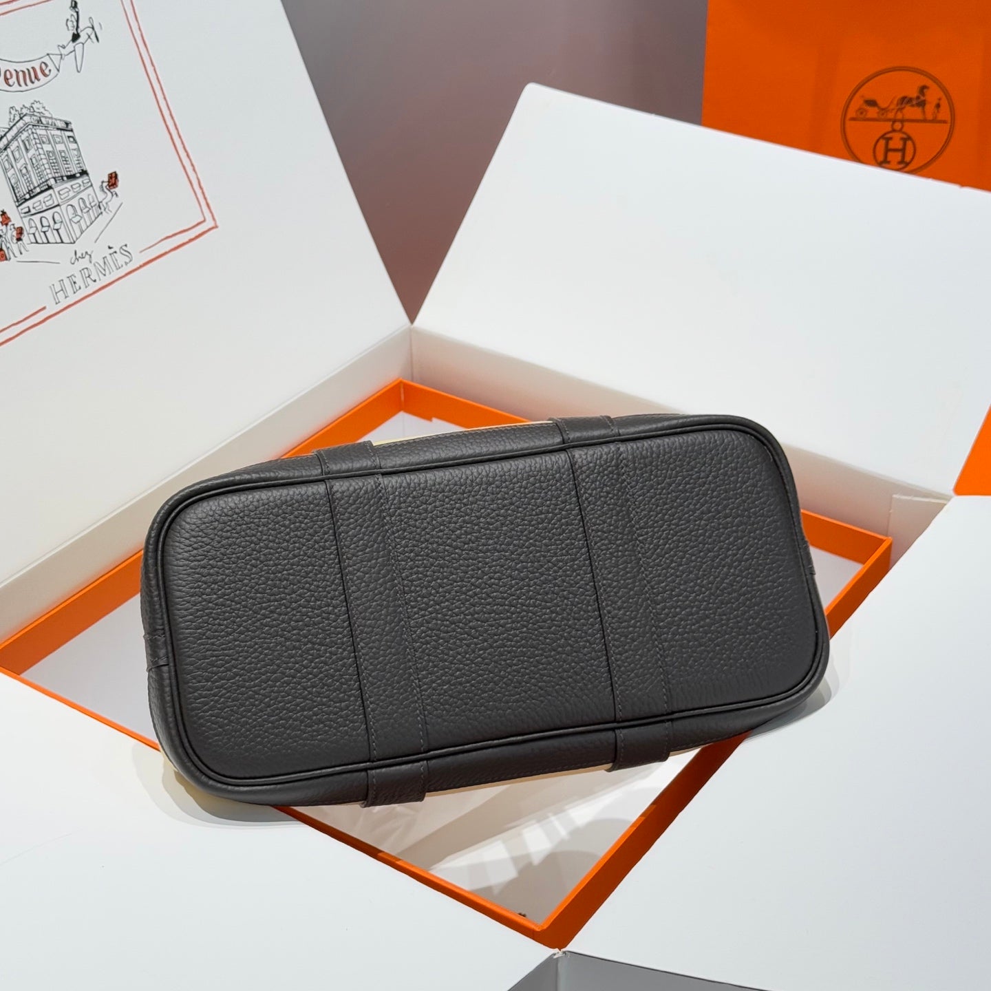 HM Garden Party 30cm Bag Black Togo Light Beige Canvas