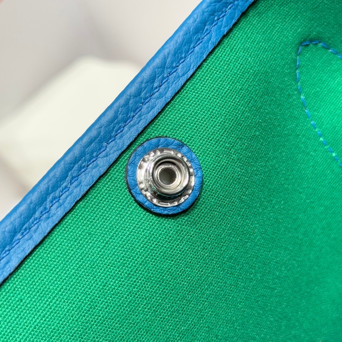 HM Garden Party 30cm Bag Blue Togo Cream Canvas