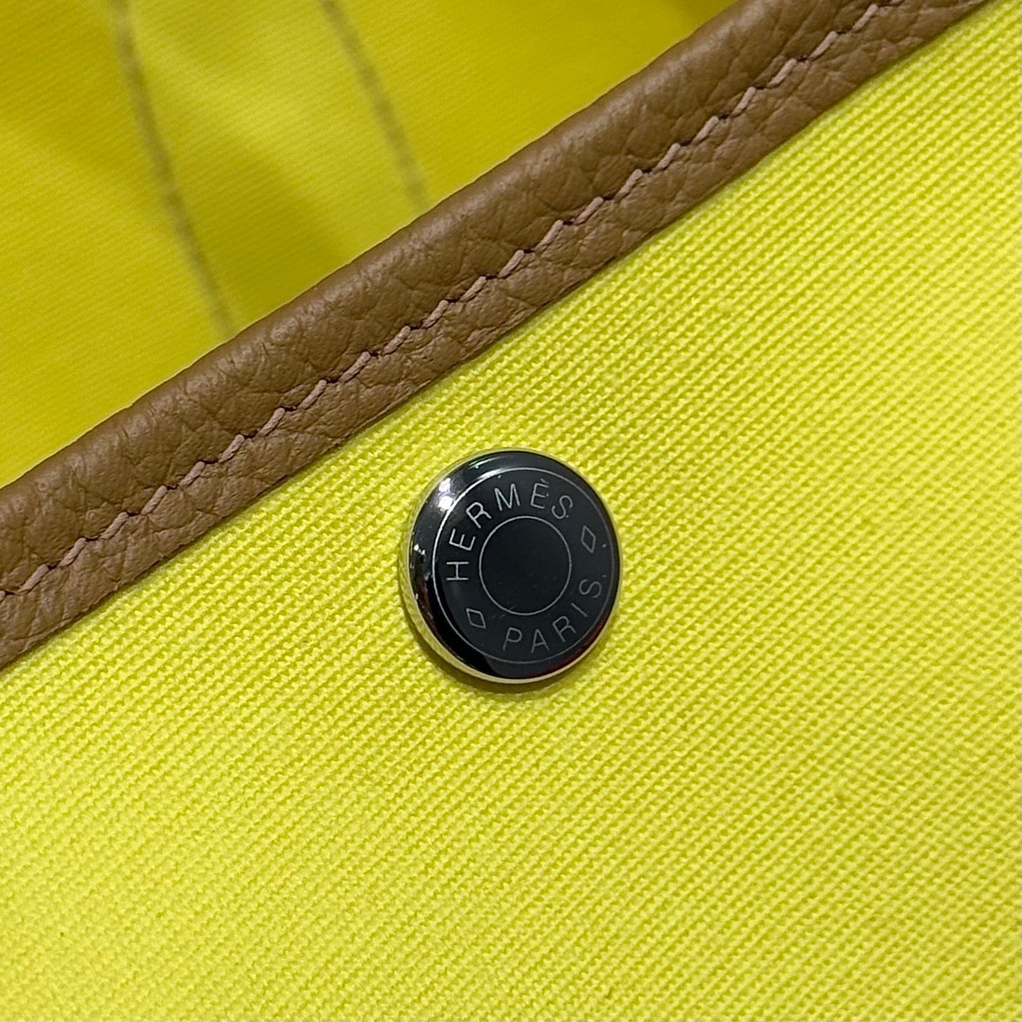 HM Garden Party 30cm Bag Brown Togo Yellow Canvas
