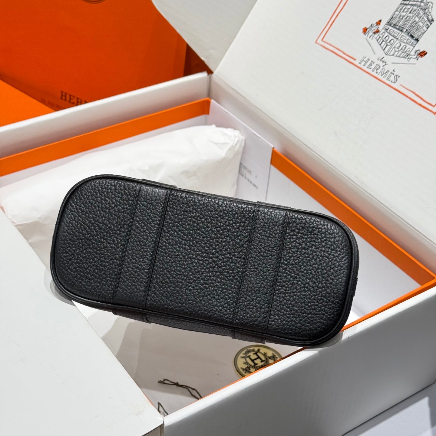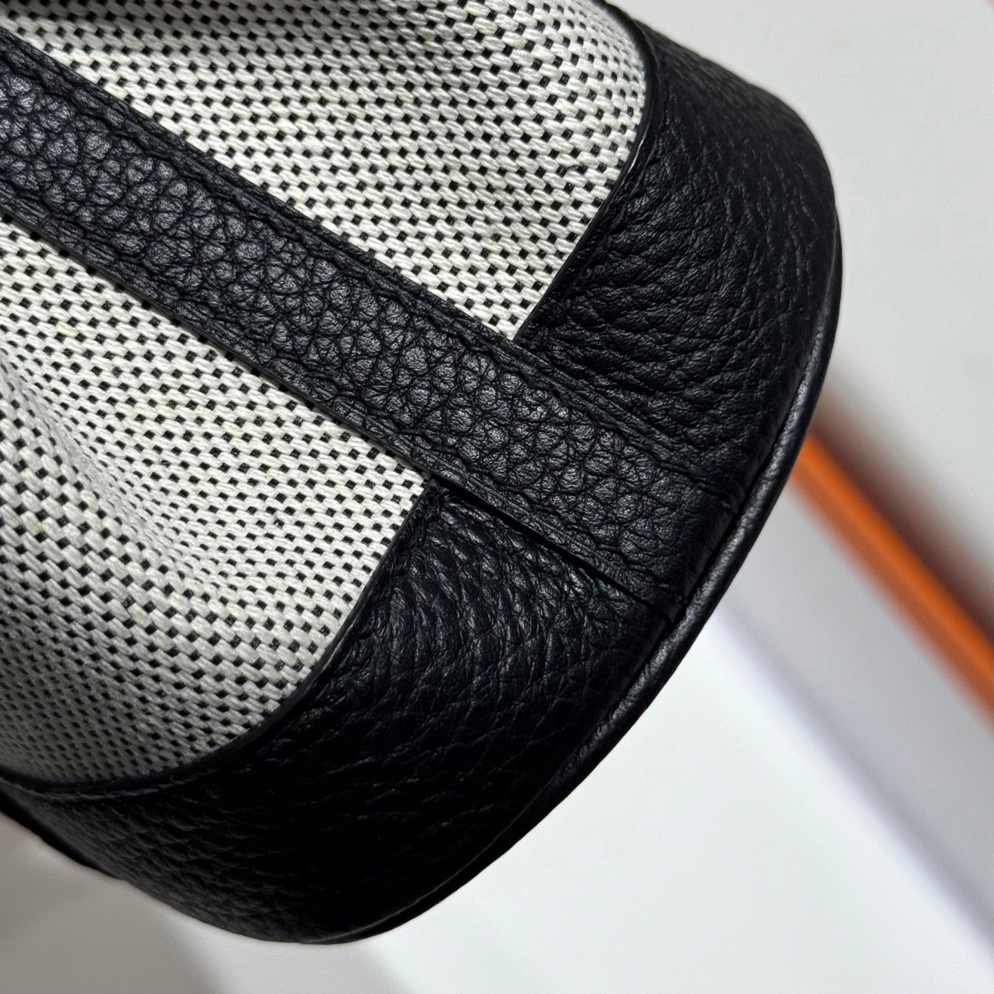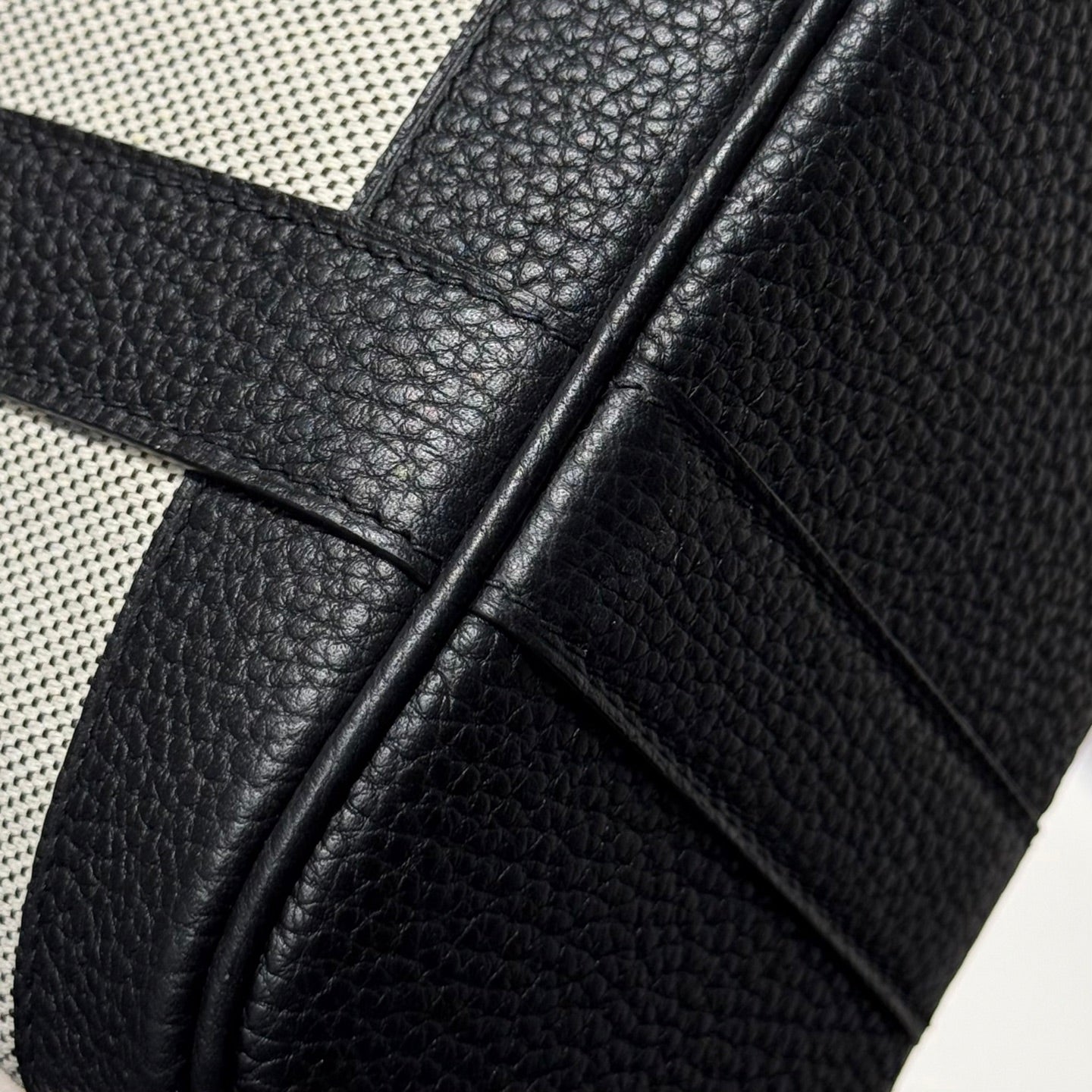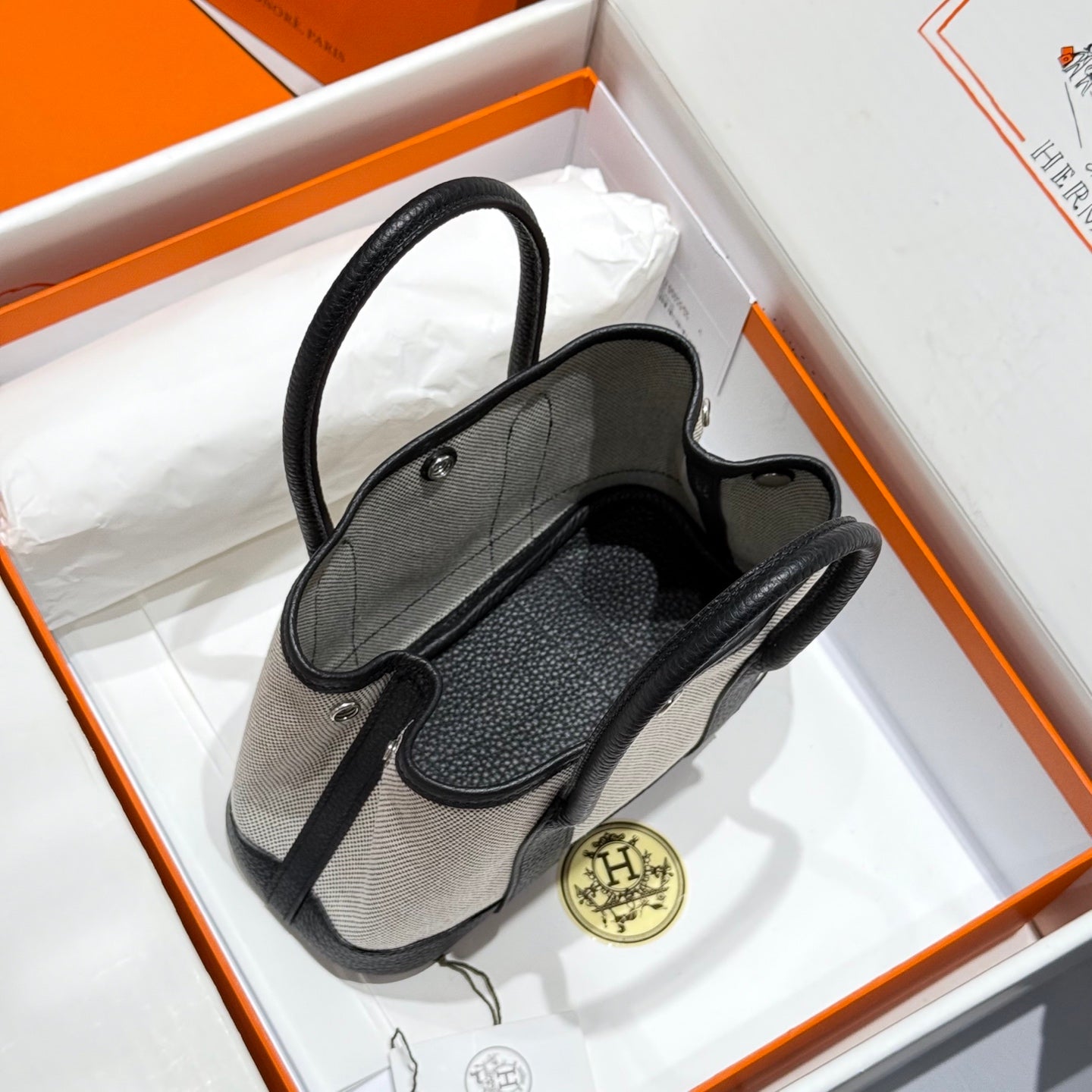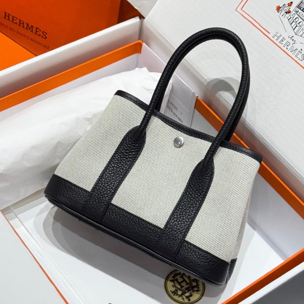 HM Garden Party Mini 23cm Bag Black Togo Cream Canvas