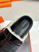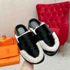 HM Go Mule Black White Cowhide Lined With Wool Fleece 476589