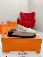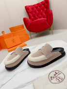 HM Go Mule Taupe Mix White Suede Lined With Wool Fleece 476594