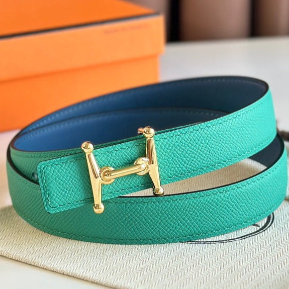 HM Gold Mors H buckle & Reversible 24 mm belt Blue Green leather 125357