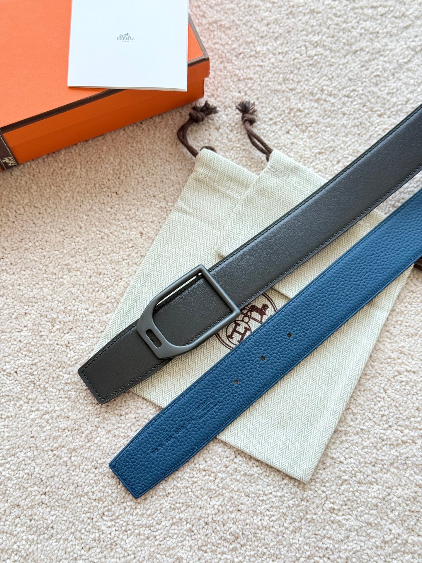 HM Jockey Buckle Belt 38mm Prussian blue Black Leather 187521