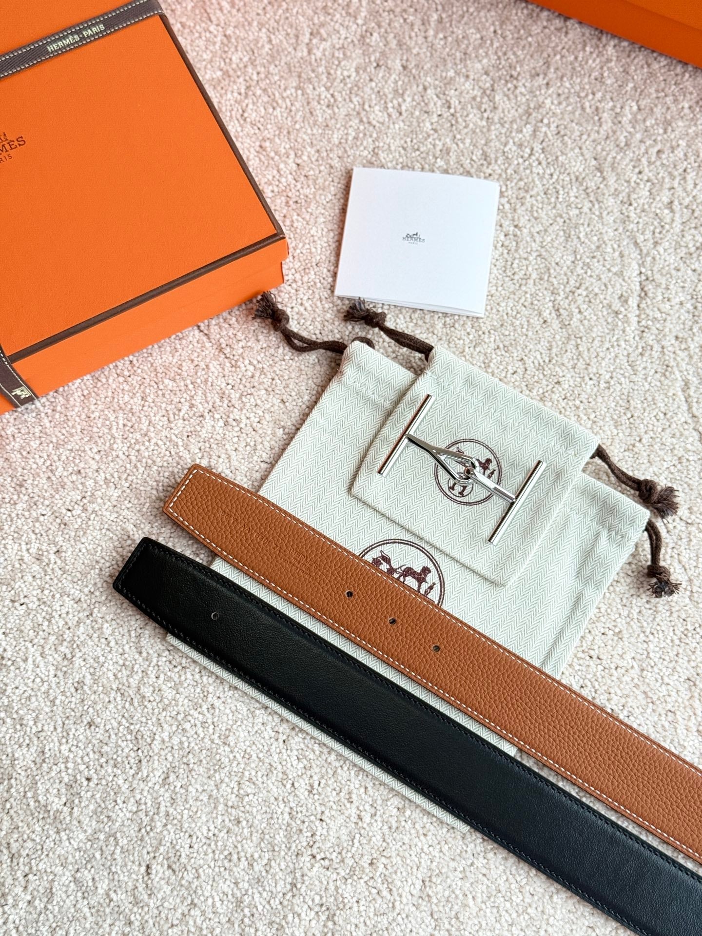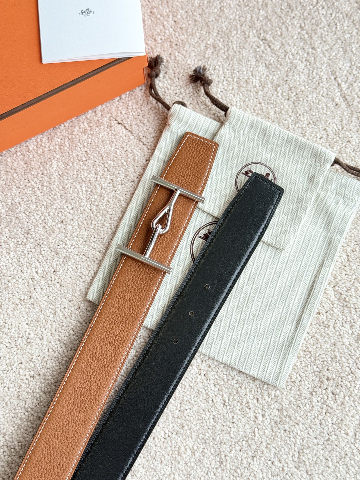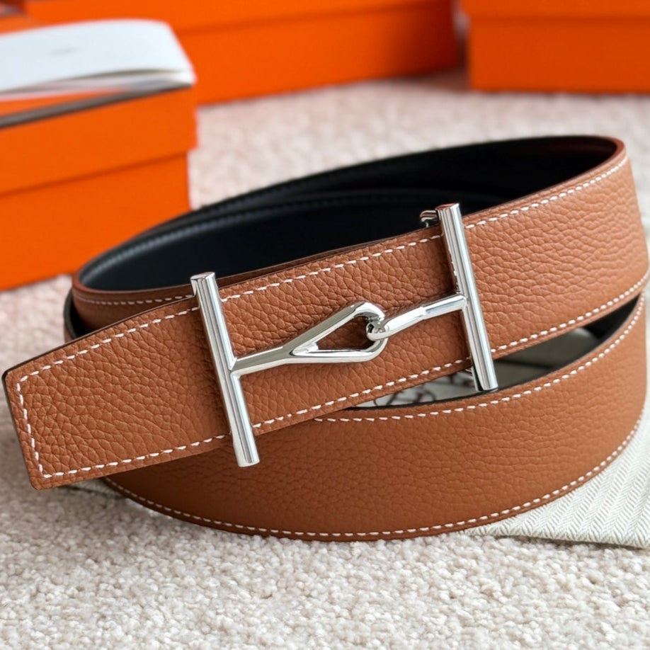HM Jumbo Buckle Belt 38mm Brown Black Leather 187559