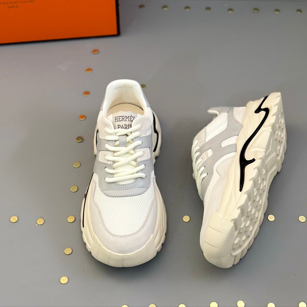 HM Men's Sneaker White Grey Mesh Calfskin 541262