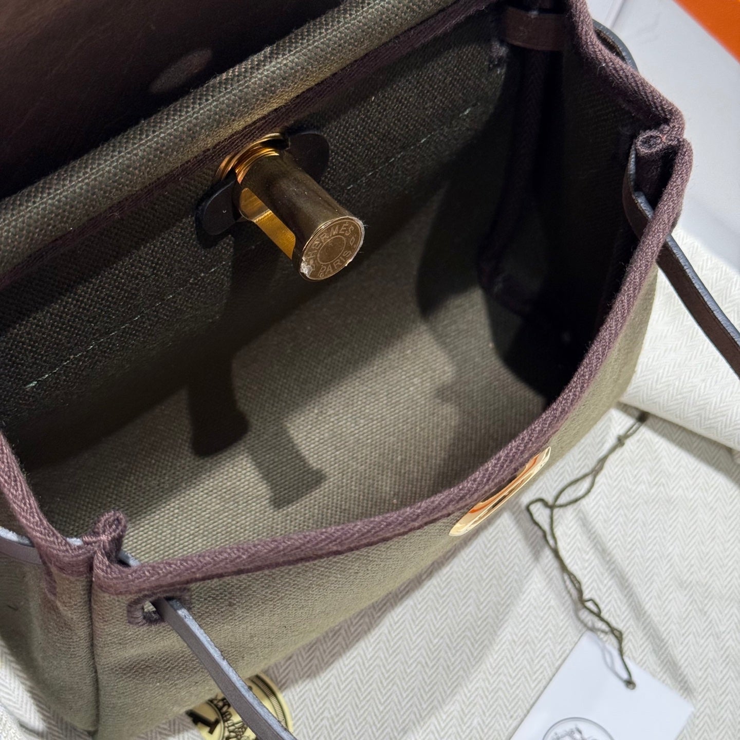HM Mini Herbag Gold Buckle 20 Army Green Canvas and Hunter Cowhide 243360