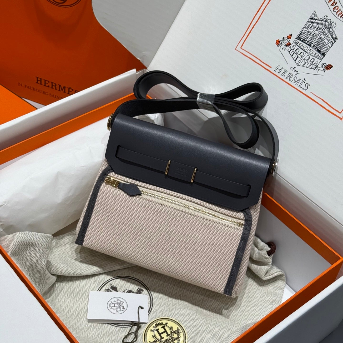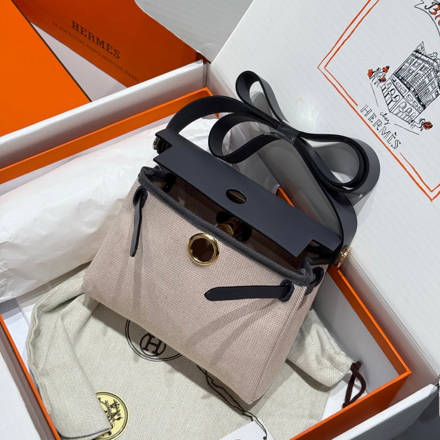 HM Mini Herbag Gold Buckle 20 Cream Canvas and Hunter Cowhide 243275