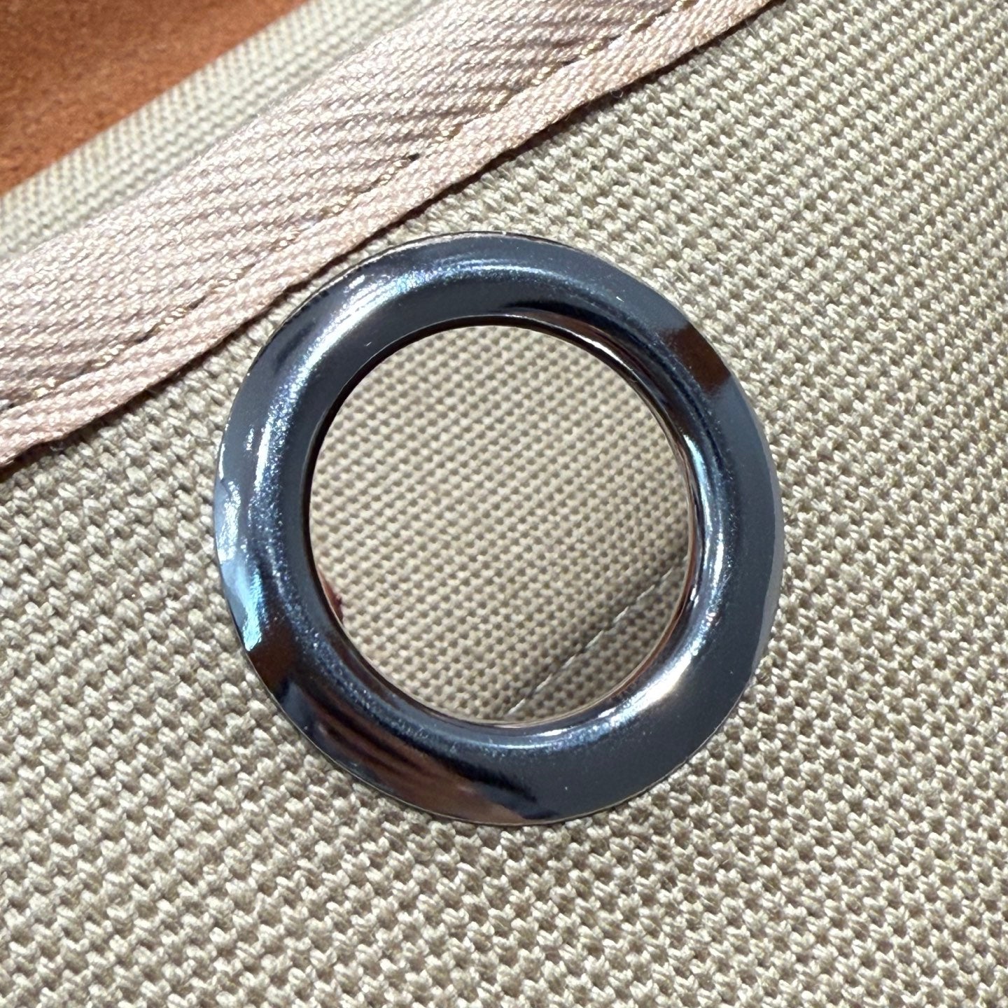 HM Mini Herbag Silver Buckle 20 Natural Canvas and Hunter Cowhide 243315