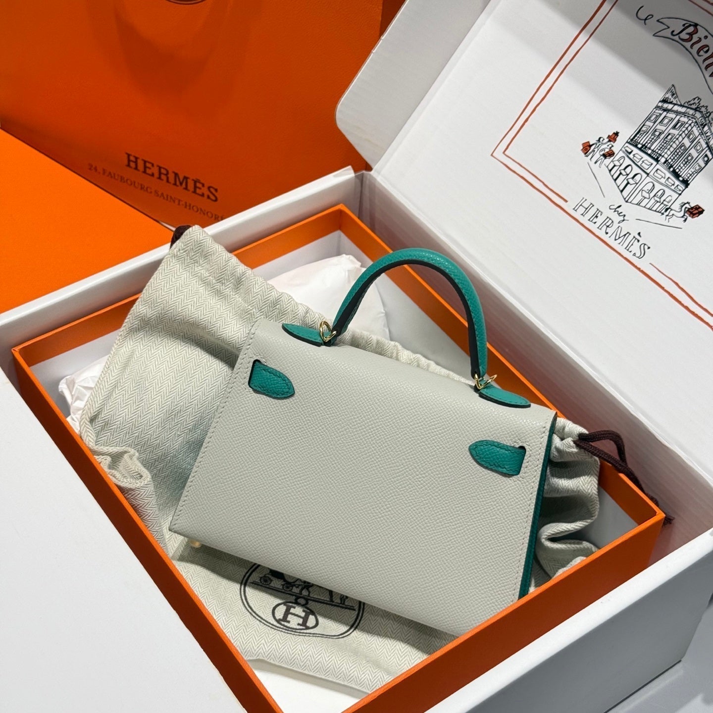 HM Mini Kelly 19 Pearl Gray Epsom 243140