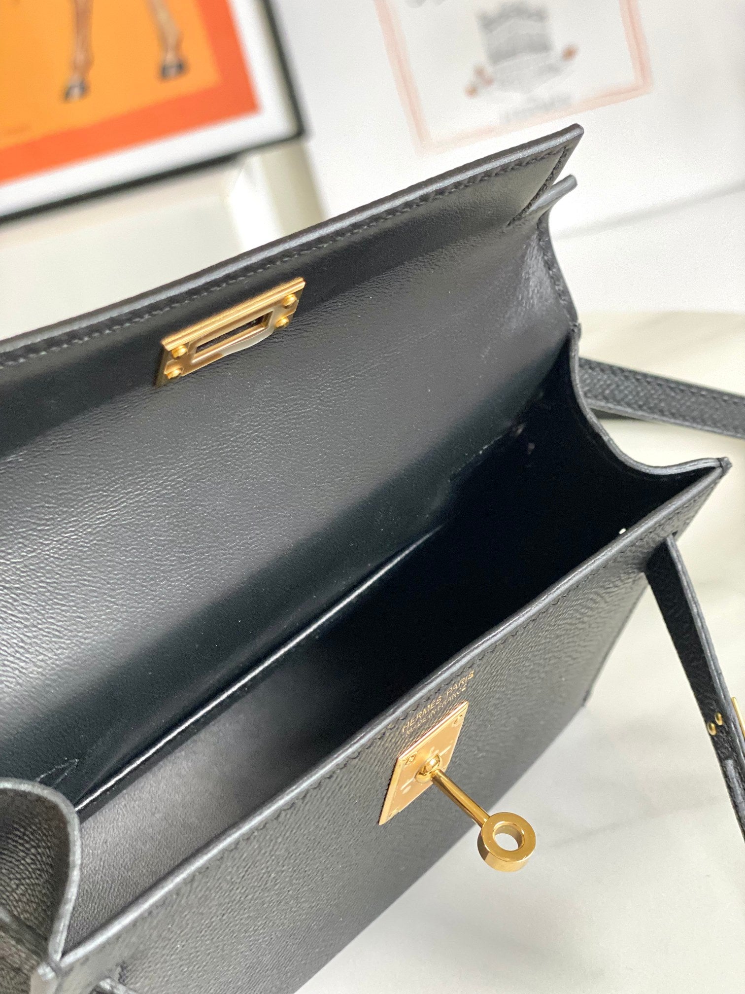 HM Mini Kelly 19cm Black Epsom Gold Hardware