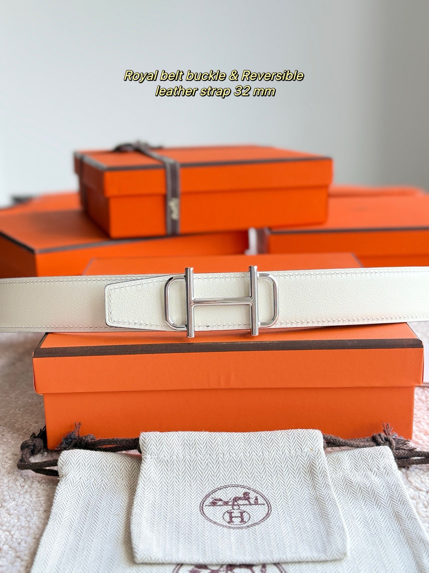 HM Silver Buckle 32mm Royal Belt Ivory Leather 188424