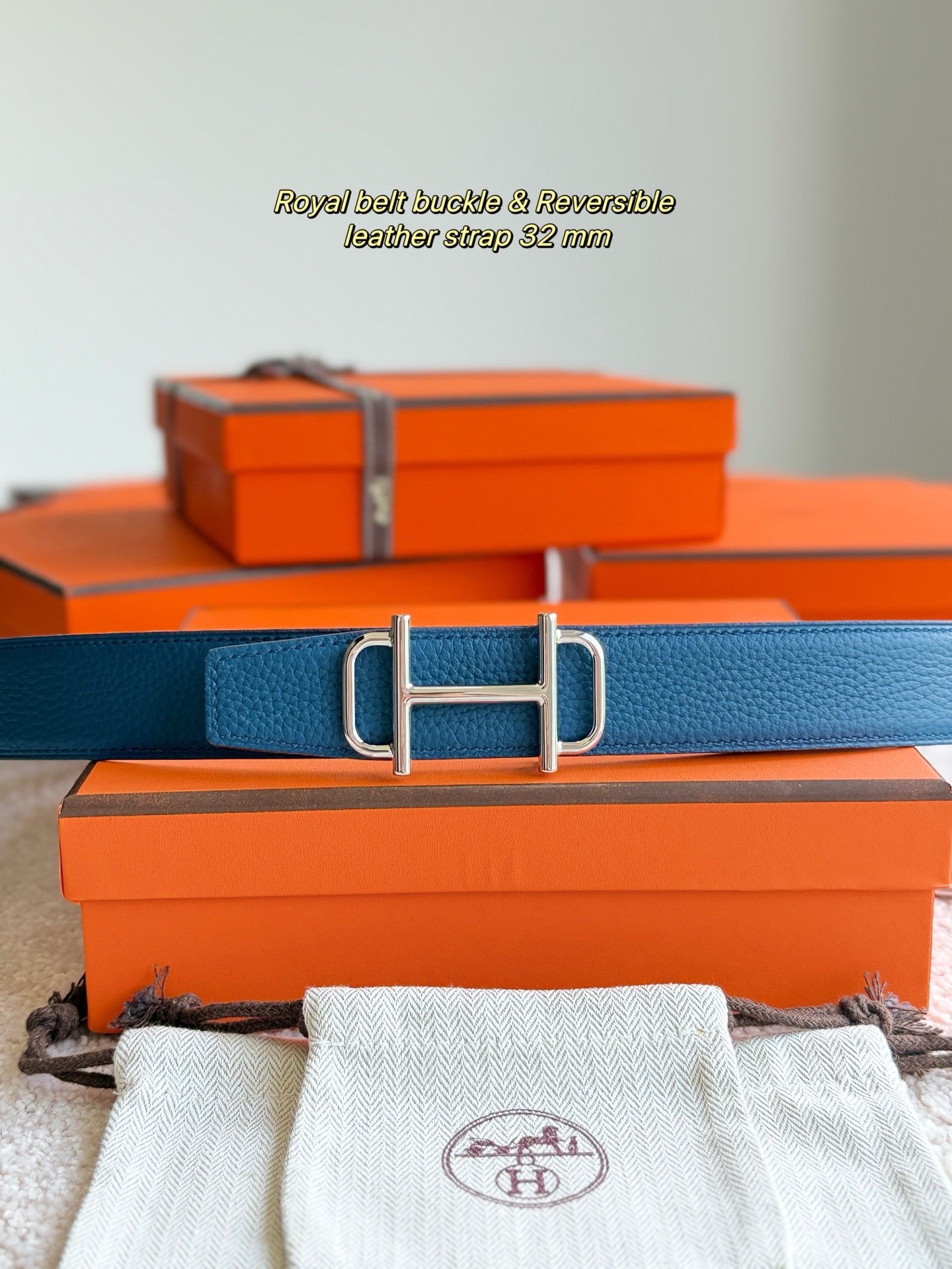 HM Silver Buckle 32mm Royal Belt Prussian Blue Leather 188419