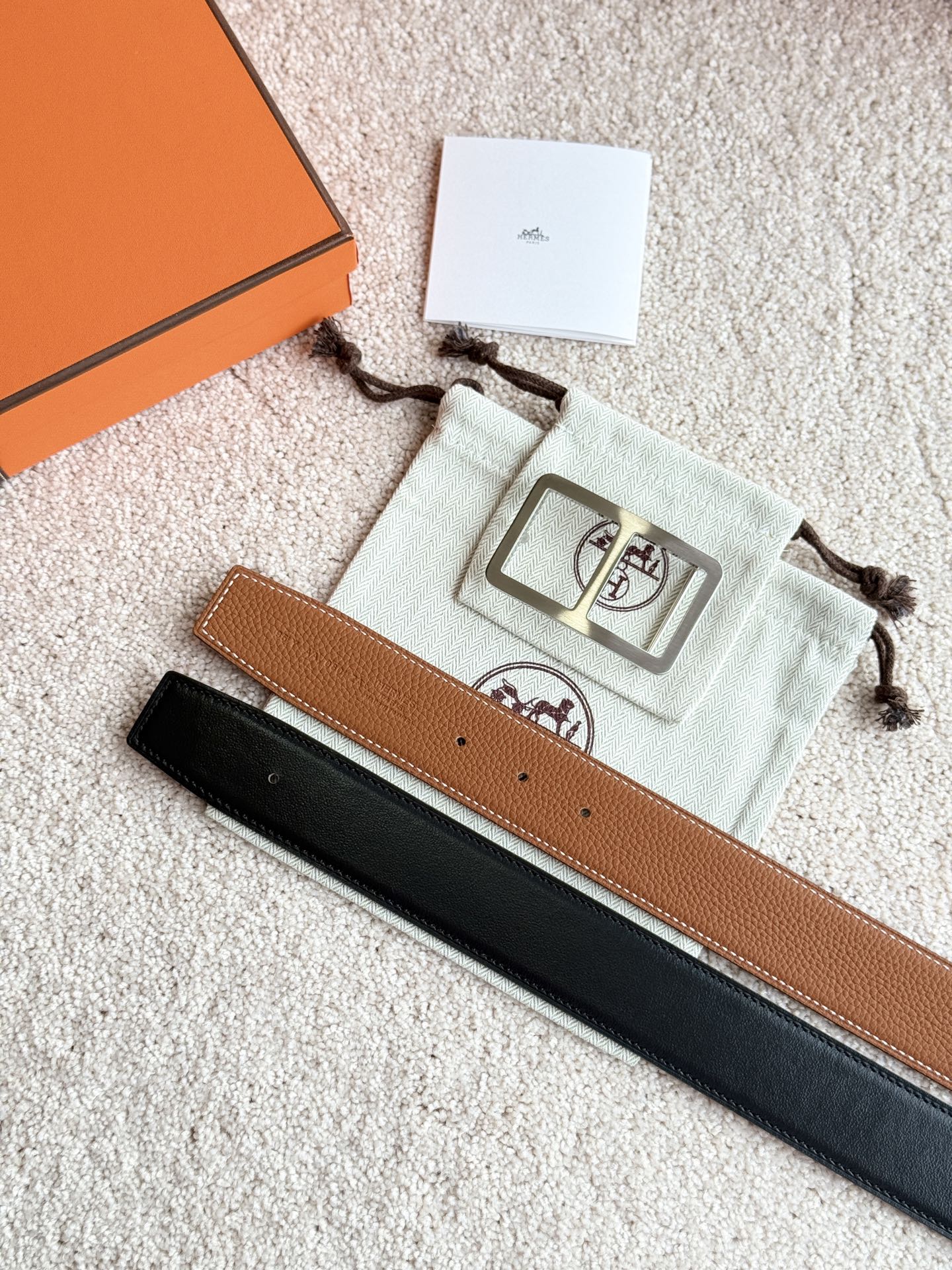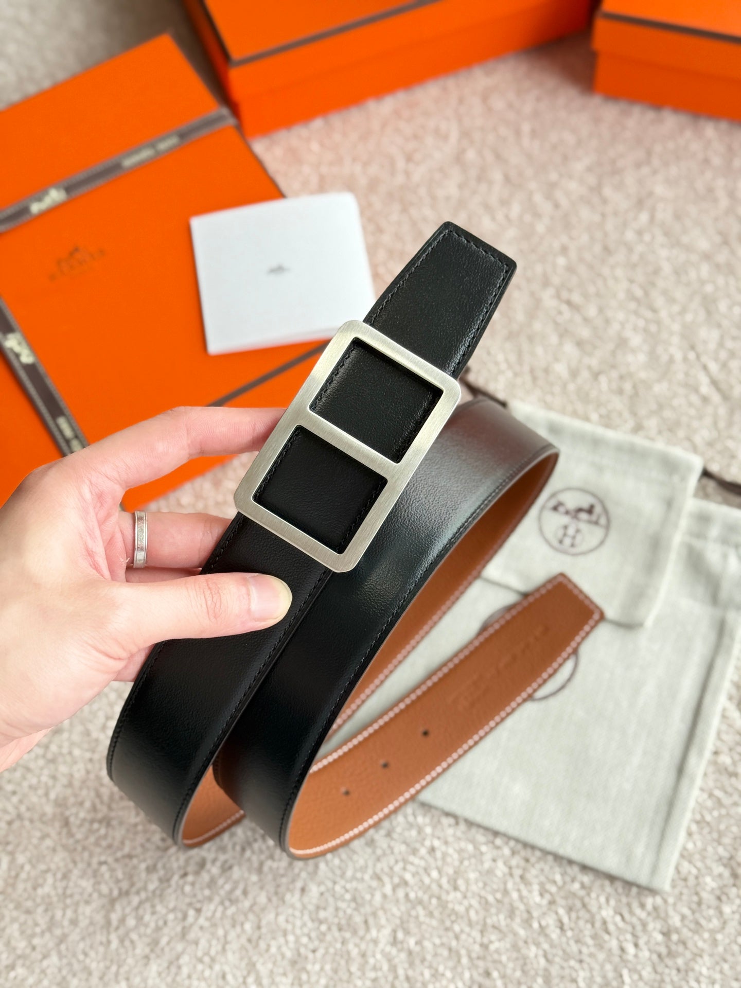 HM Silver Buckle Belt 38mm Brown Black Leather 187556
