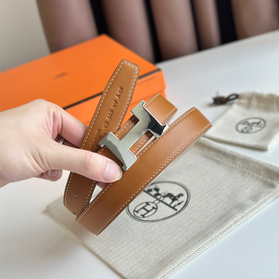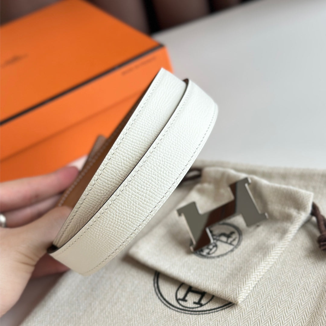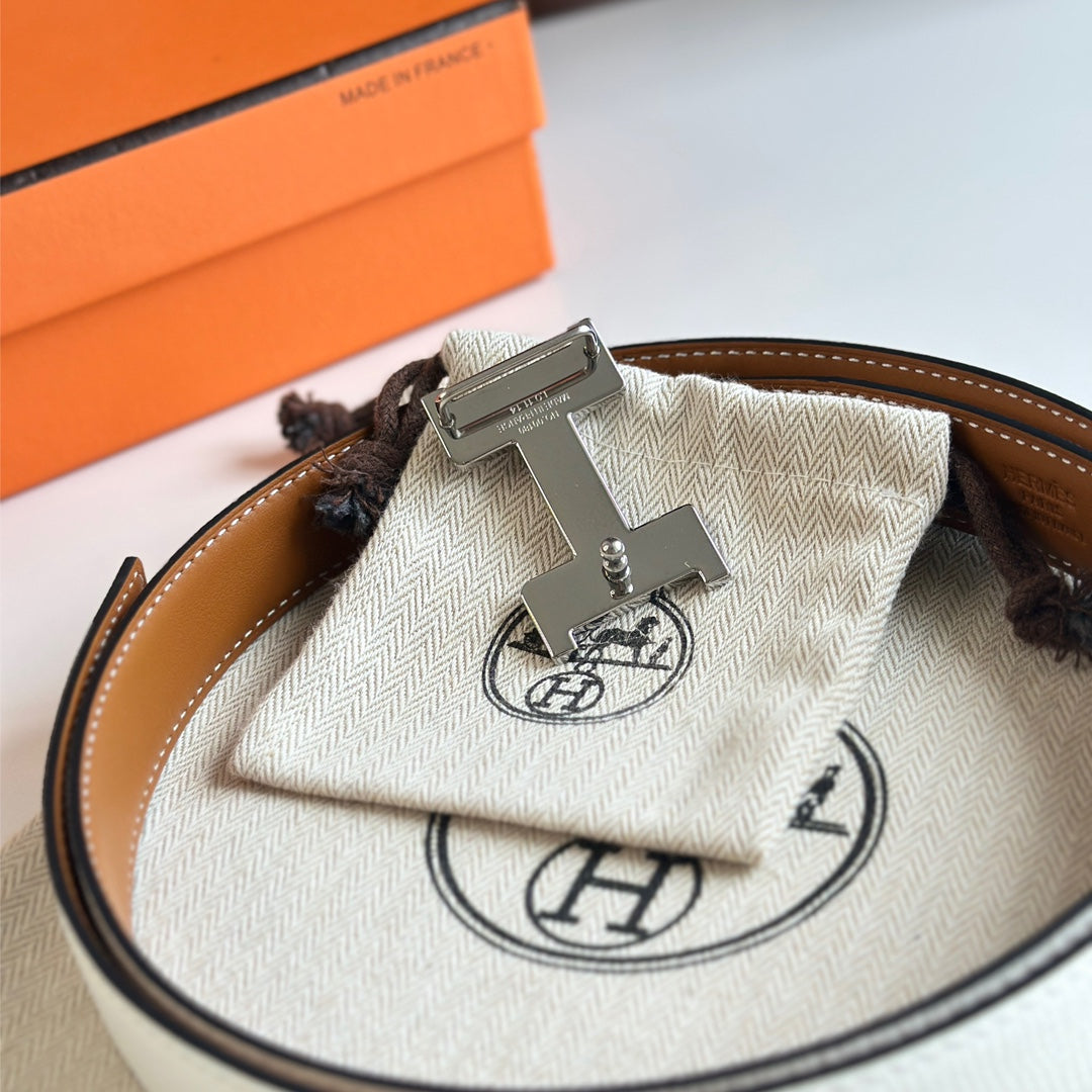 HM Silver Constance & Reverible Belt Brown White Leather 125375