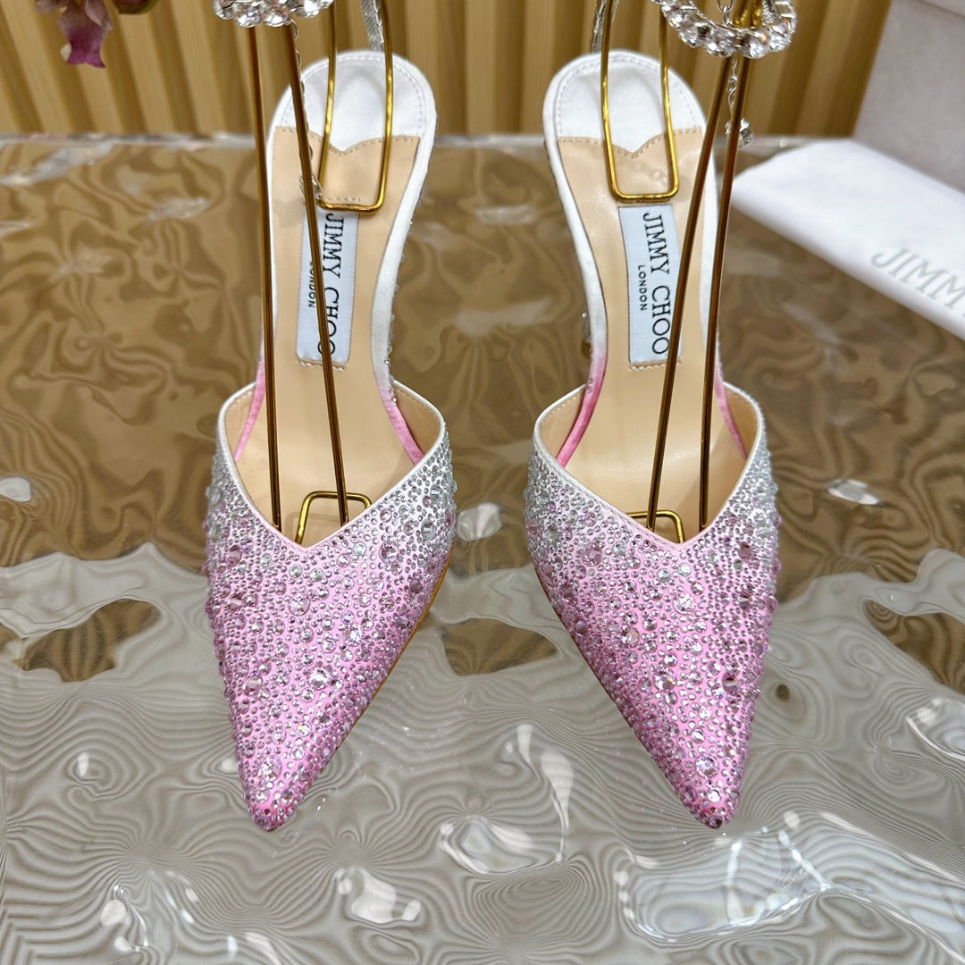 Jimmy Saeda 100mm In Light Pink Satin Pumps With Crystal Embellishment 641072