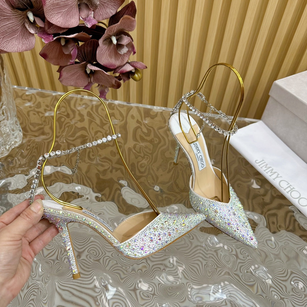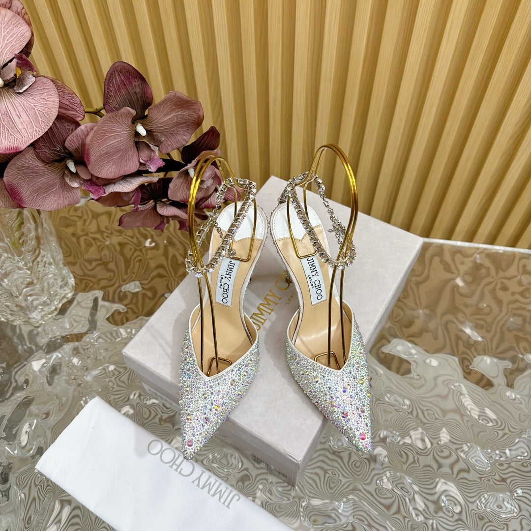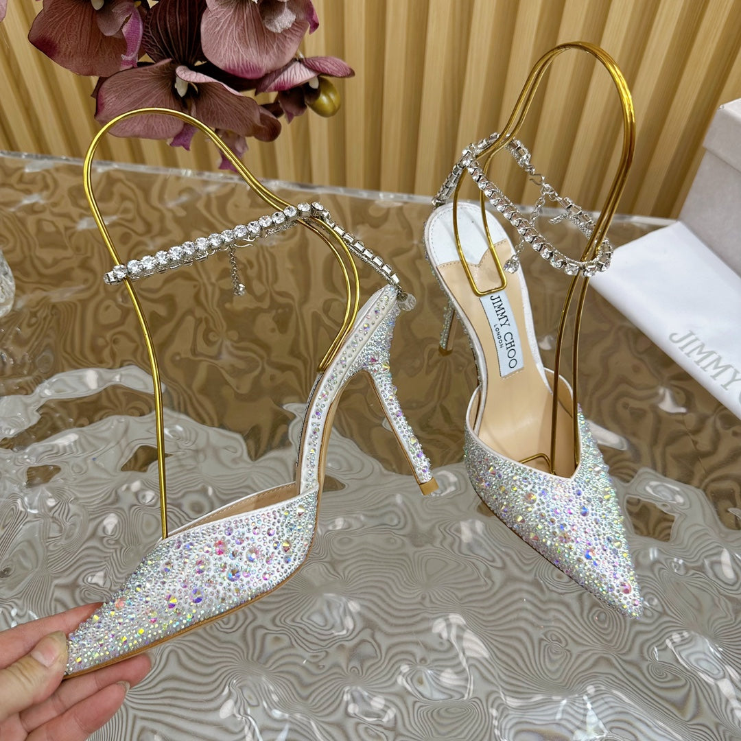 Jimmy Saeda 100mm In White Silver Satin Pumps With Crystal Embellishment 641056