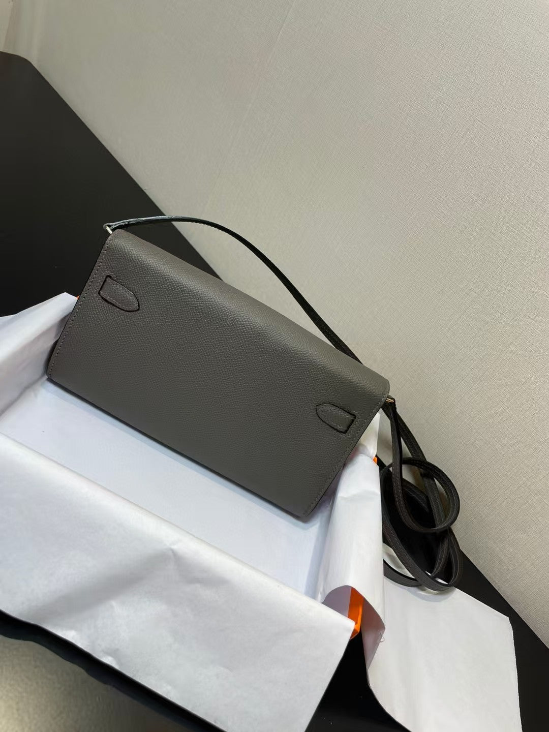 KELLY CLASSIQUE TO GO WALLET EPSOM 20 IN GREY WITH GOLD HARDWARE