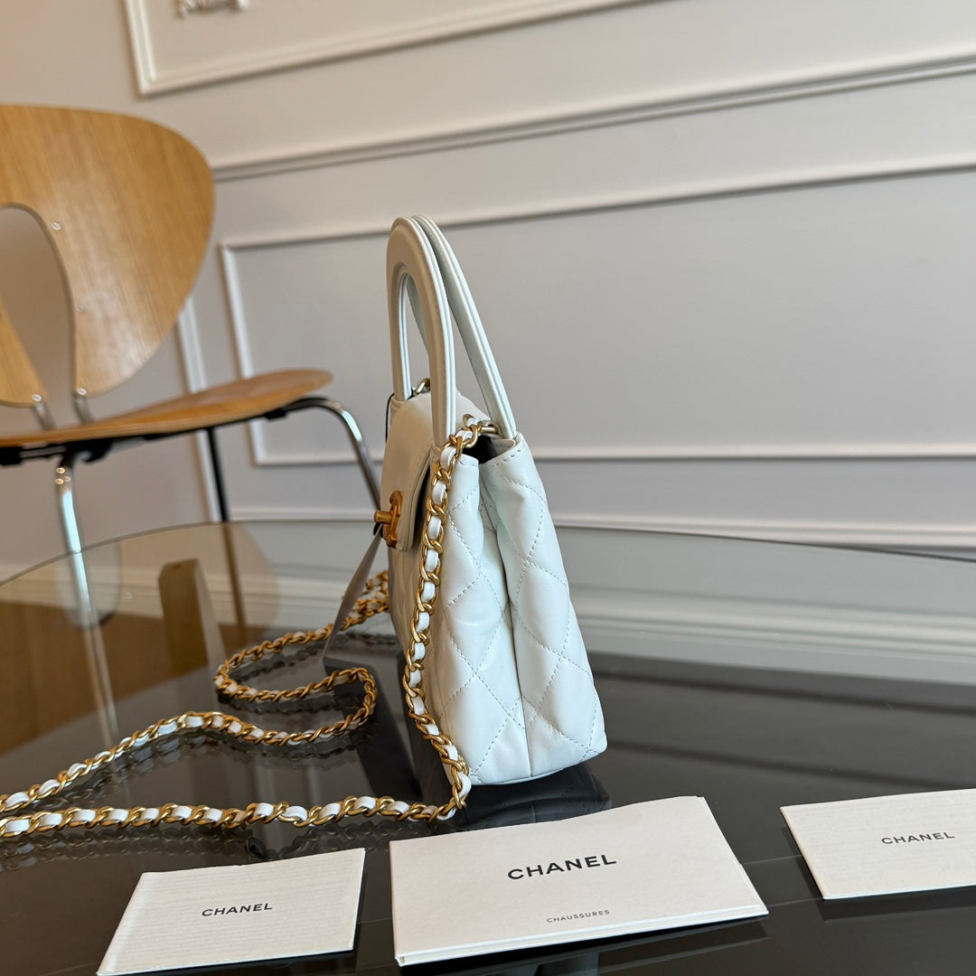 KELLY SHOPPING BAG 19 IN WHITE CALFSKIN GOLD HARDWARE
