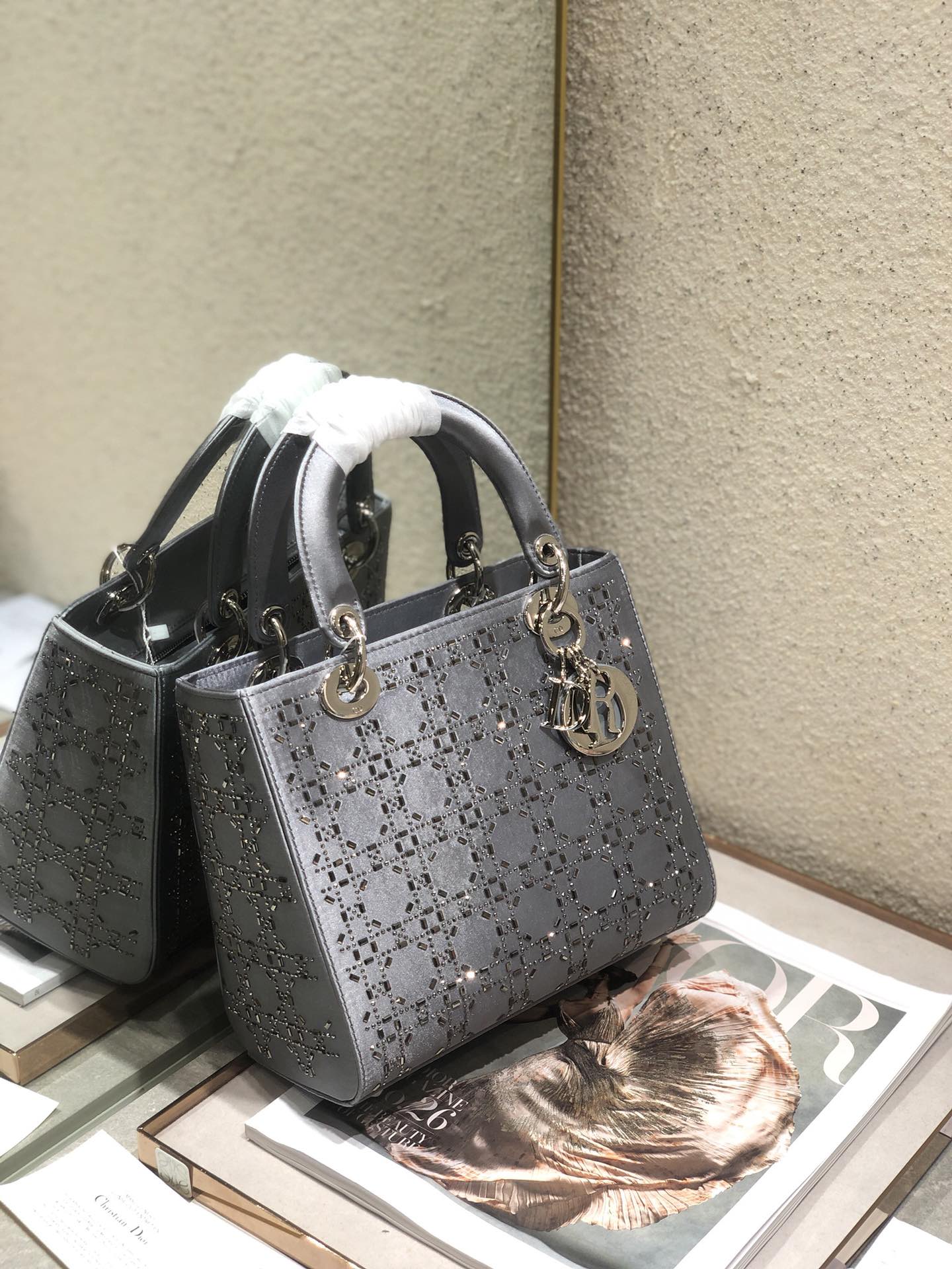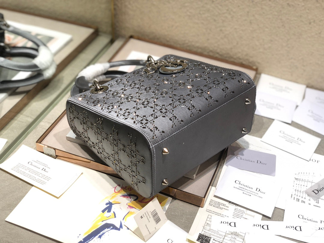 LADY 24 HANDBAG EMBOSSED DIAMOND IN GREY CALFSKIN