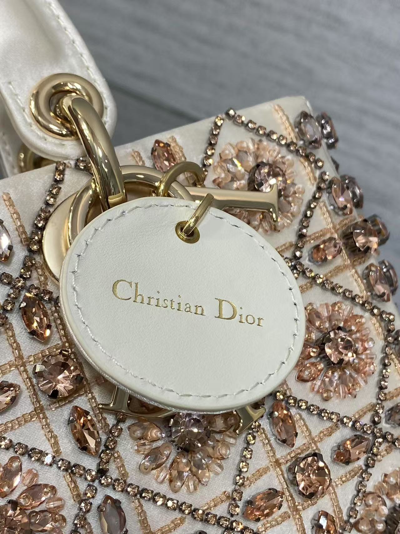 Lady D-Joy Bag 22 White Lambskin Pink Bead Embroidery