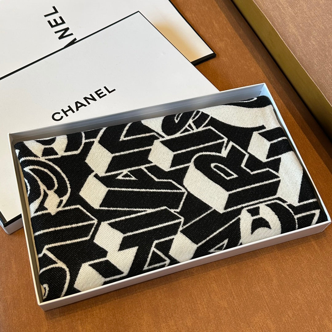 LETTER LOGO 178 CM SCARF IN BLACK MIX WHITE SHEEP WOOL AND SILK 393103