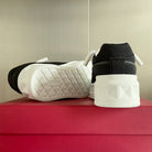 LOW-TOP SNEAKER IN WHITE NAPPA LEATHER AND BLACK TOILE ICONOGRAPHE FABRIC