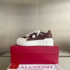 LOW-TOP SNEAKER IN WHITE NAPPA LEATHER AND CHOCOLATE BROWN TOILE ICONOGRAPHE FABRIC