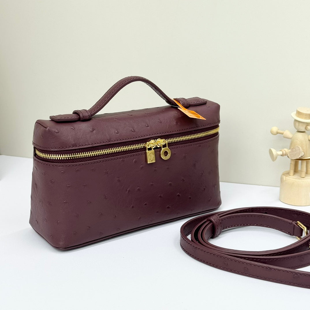 LP Extra Bag 19cm Ostrich Pattern Burgundy Calfskin Gold Hardware