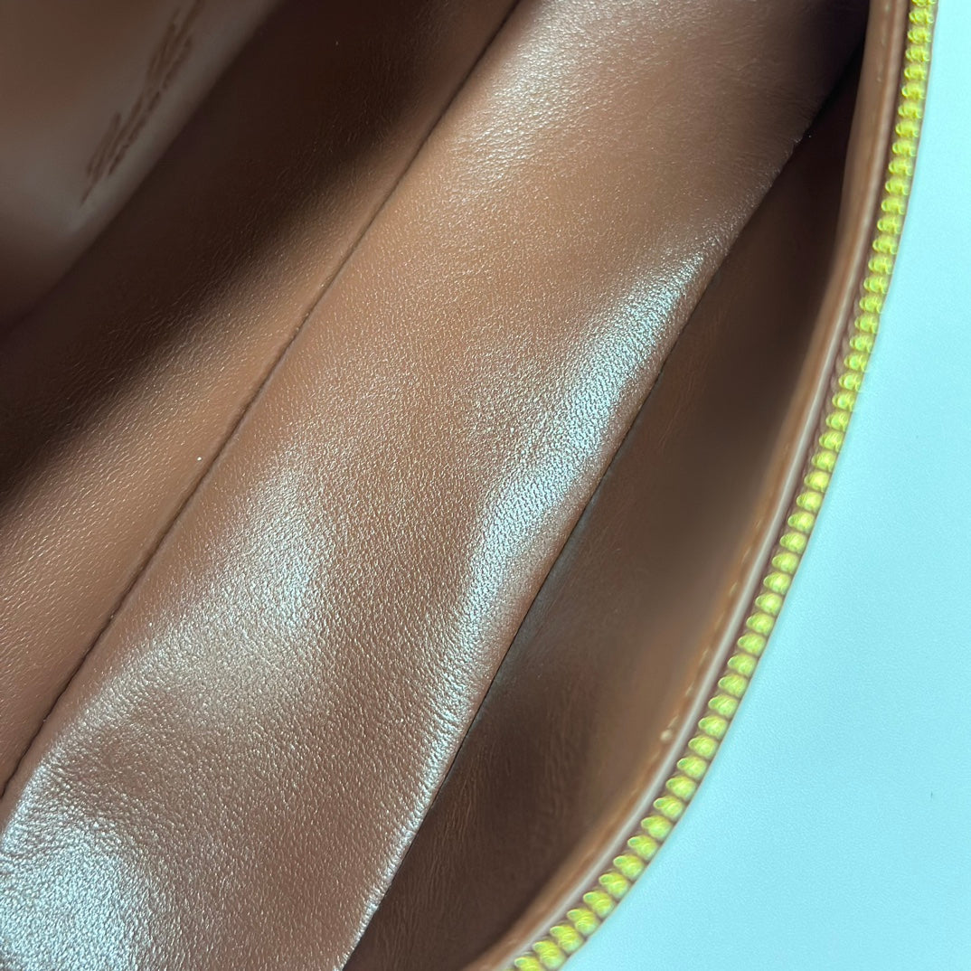 LP Extra Bag 19cm Ostrich Pattern Chestnut Brown Calfskin Gold Hardware