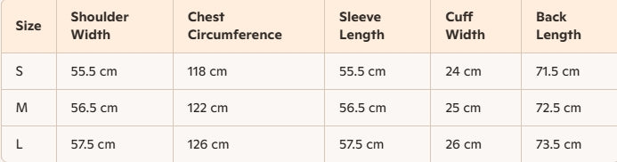 - Size : S, M, L
