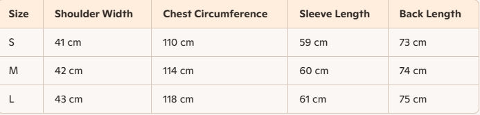 - Size : S, M, L