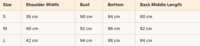 - Size : S, M, L