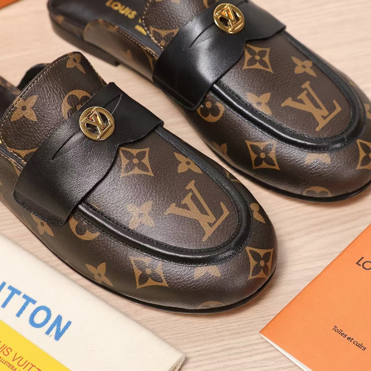 LV 25C Flat Mule Caramel Brown Monogram Cowhide 218315