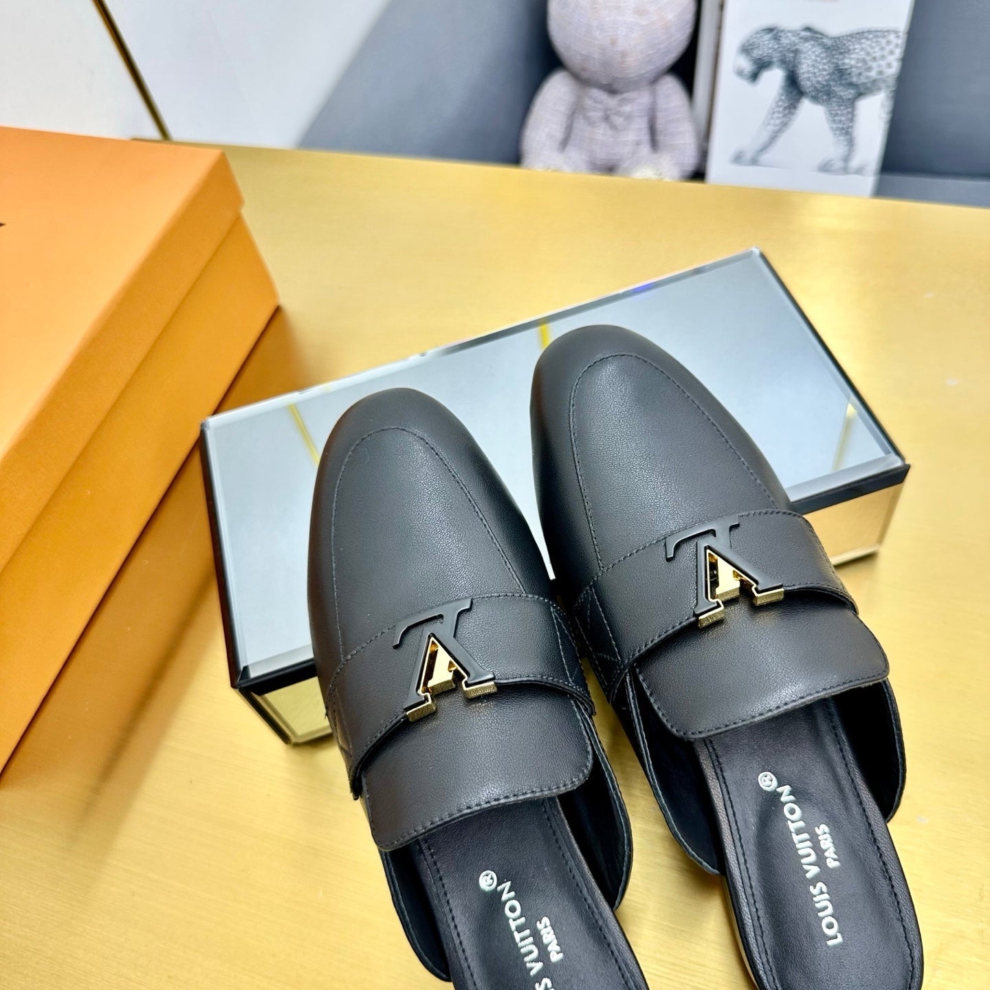 LV 25C LV Capri Open Back Loafer Black Cowhide 219928